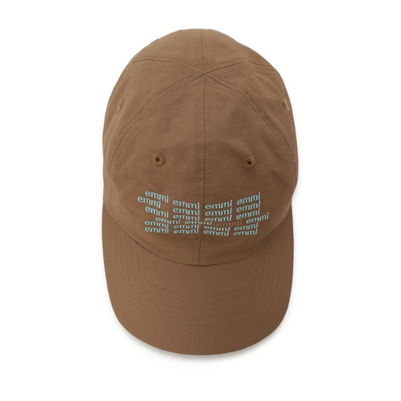 撥水機能が付いたナイロンを使用したemmiオリジナルロゴキャップ。