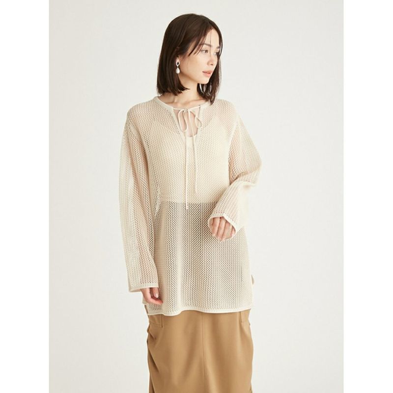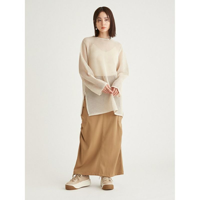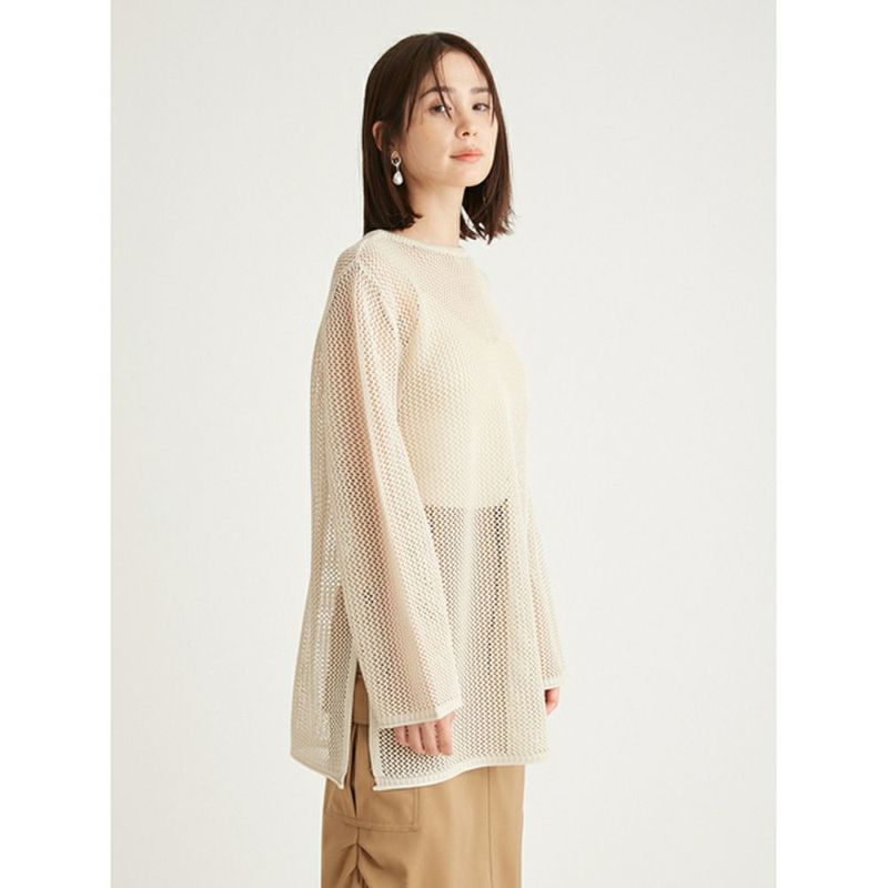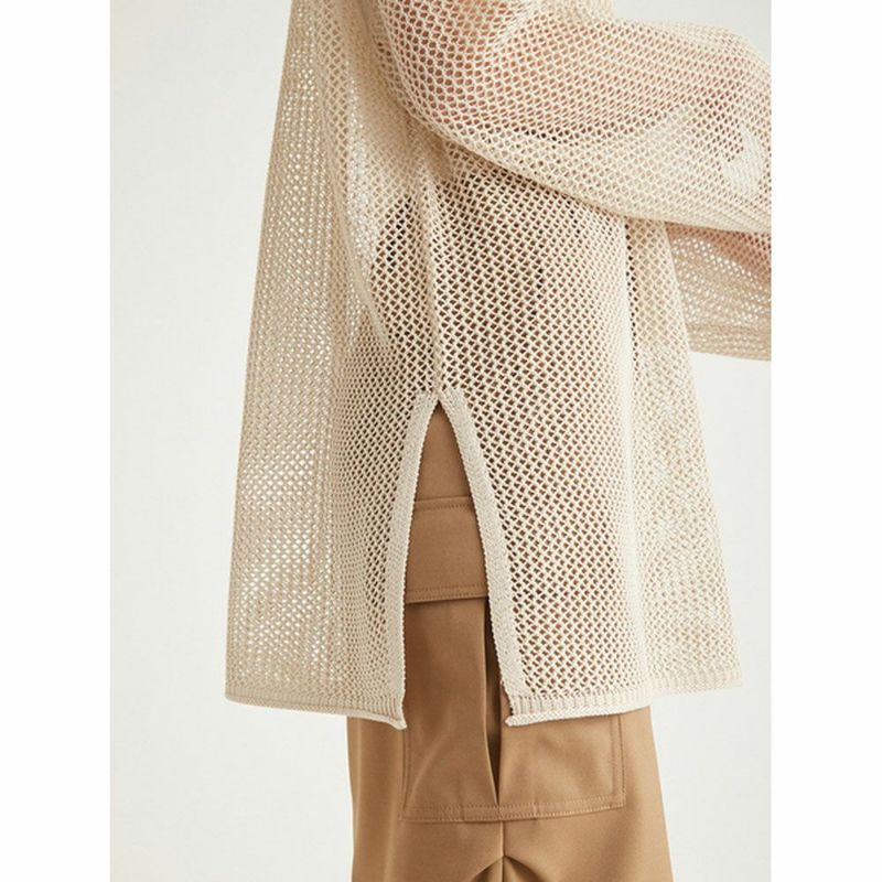 インナーにキャミソールやタンクトップを合わせ、程よい肌見せが叶うメッシュニットは、春から初夏にかけて1枚持っておくと重宝します。