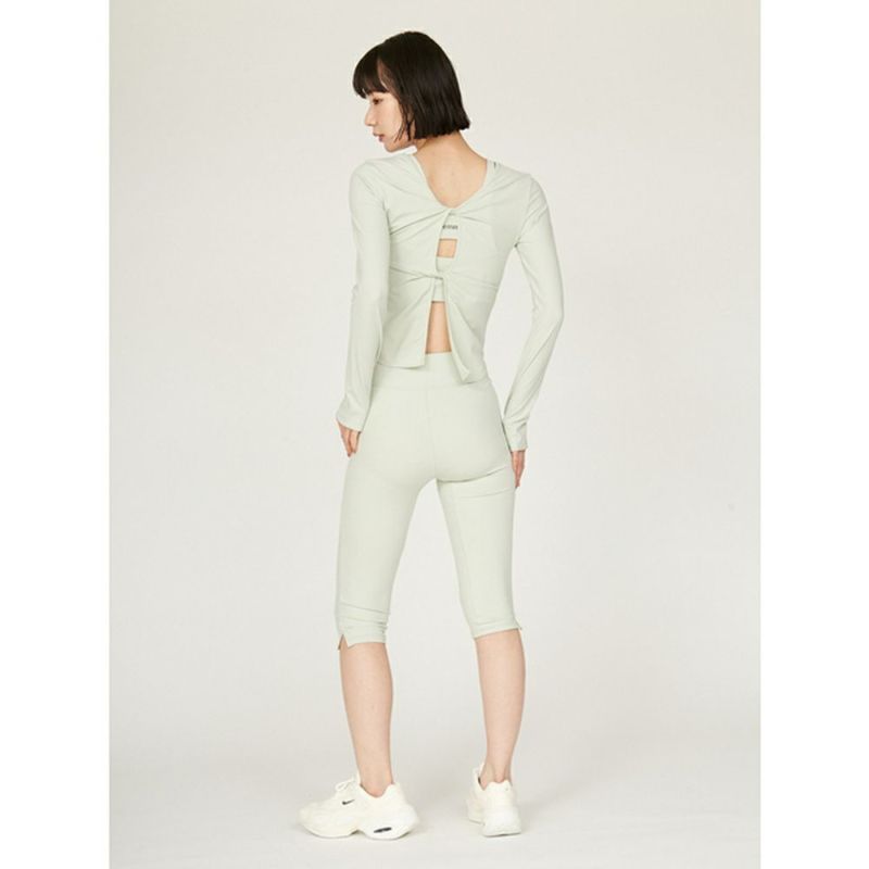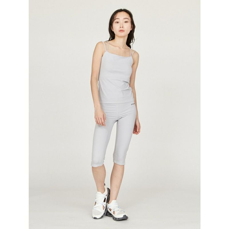 膝下丈のハーフレギンス。後ろヨーク部分には隠しポケットが付いており、伸びるのでスマートフォンも入れる事ができるのもポイントの一つ。毎日をアクティブに過ごす女性のエクササイズや、合わせ方でデイリーウェアとしても活躍するシーンレスなアイテムです。