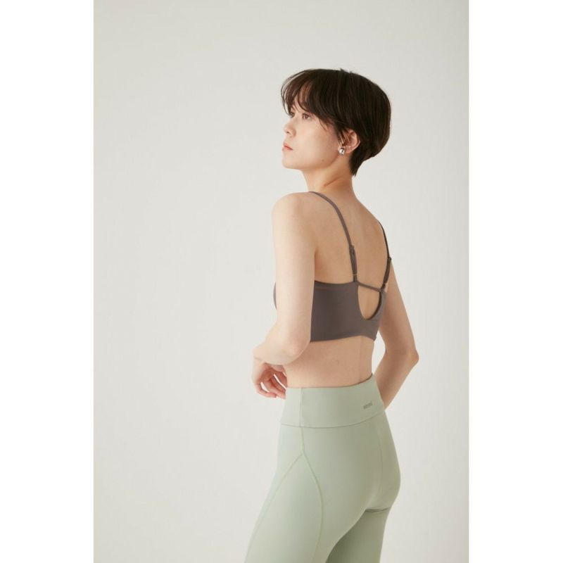 ブラトップはステッチや切り替えなどを極力無くし、YOGAウェアのみでなくファッションアイテムとして洋服とのコーディネートとして取り入れたくなるモードなデザイン。肩紐はアジャスター付きです。