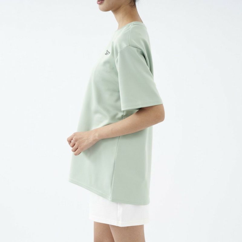 Reebok水陸両用 無地ラッシュTシャツ。ゆとりのある長めの袖で二の腕ほっそり効果抜群。前後差のある丈は気になるヒップをカバーしてくれる効果あり。いろんなウェアとコーデもしやすいです。紫外線遮蔽率90%以上