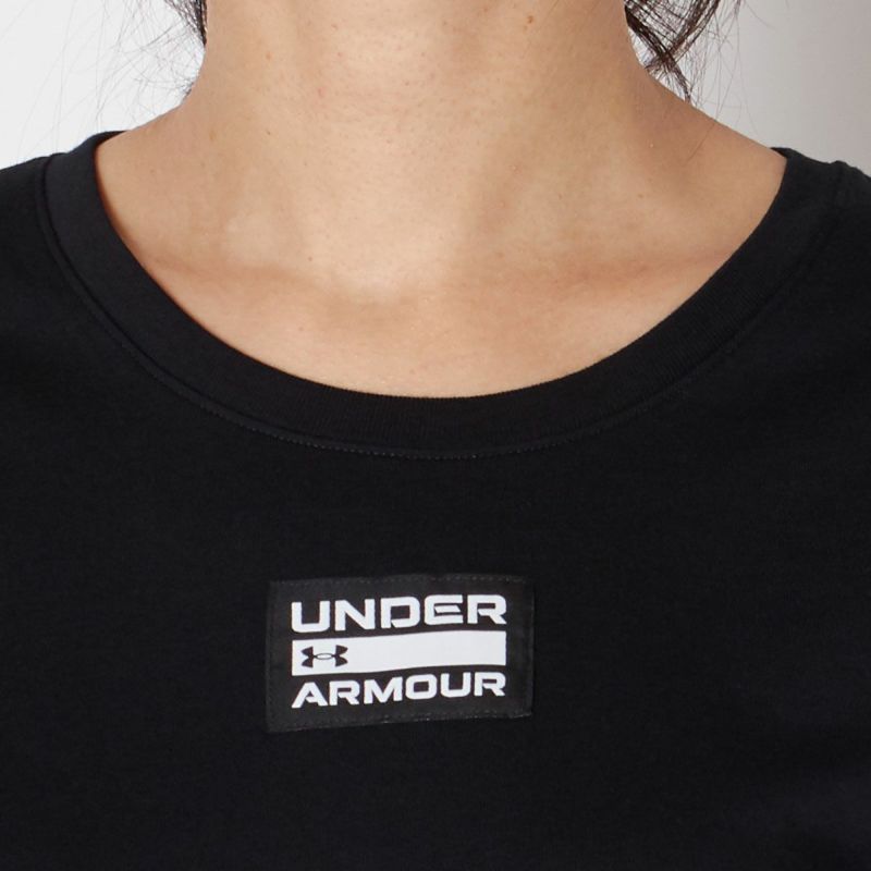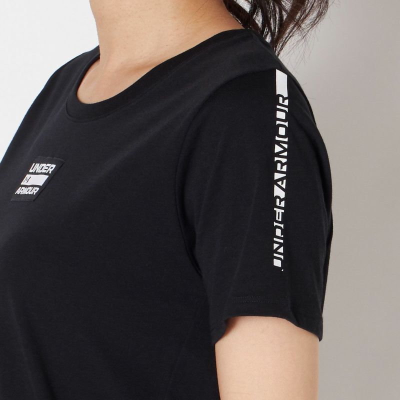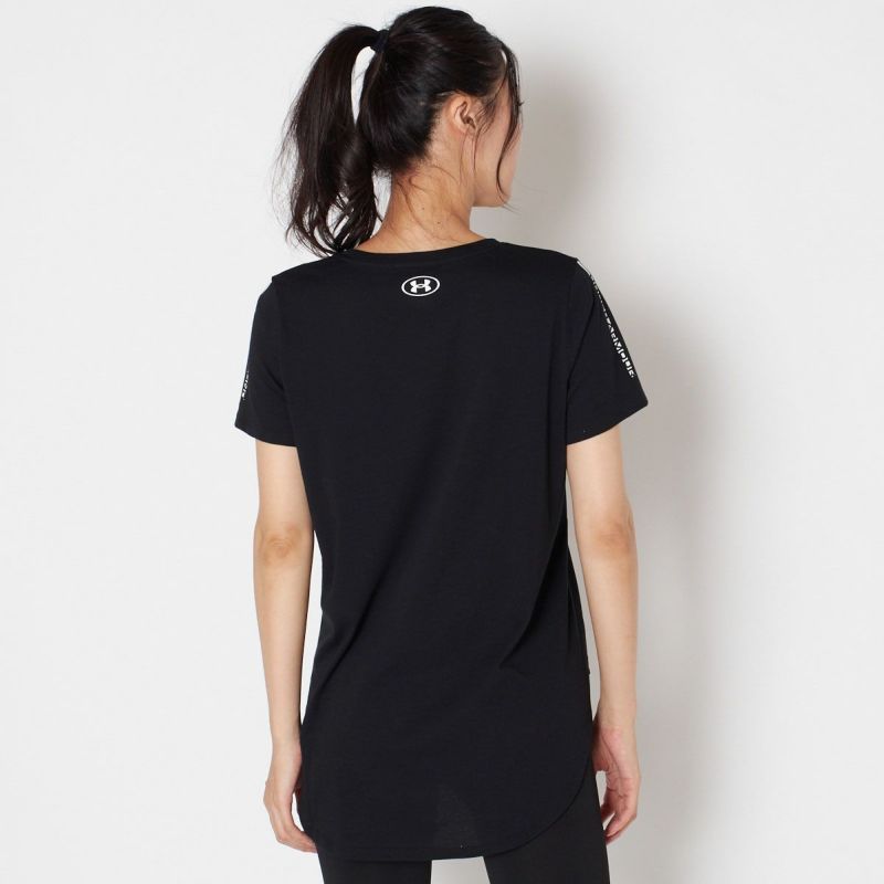 やや薄手で軽い生地で仕立てたTシャツ。袖のロゴテープをアクセントに効かせたシンプルなデザインで、合わせるボトムのデザインを選びません。長めのラウンドカットの裾が、腰回りのカバーに。運動時だけでなく、タウンユースにも◎