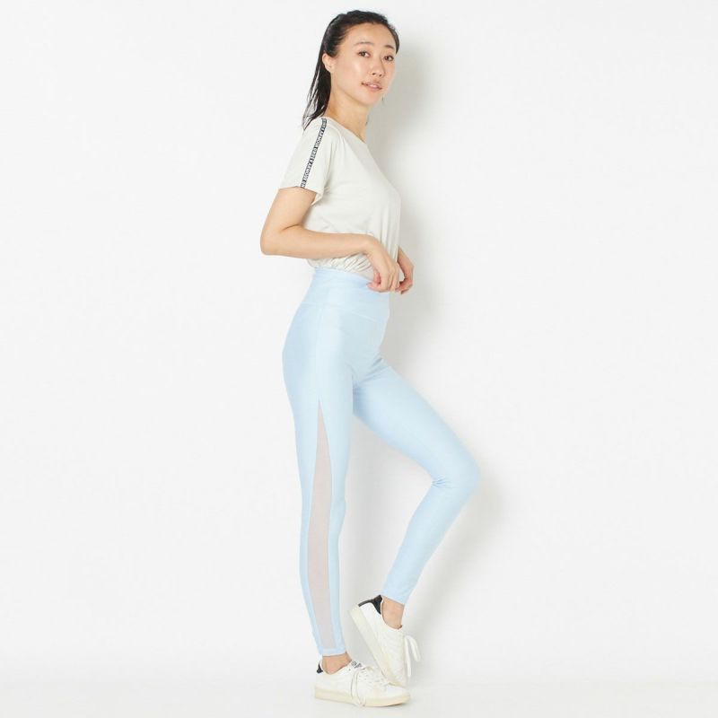 お腹までカバーしてくれるハイウエストデザインのフルレングスレギンス。サイドのメッシュ切り替えが通気性の高さと絶妙な肌見せを兼ね備えています。ストレッチポリエステル生地の程よい厚みと引き締め感が美脚効果を発揮。シンプルなワンカラーデザインで、コーディネートに取り入れやすいアイテムです。