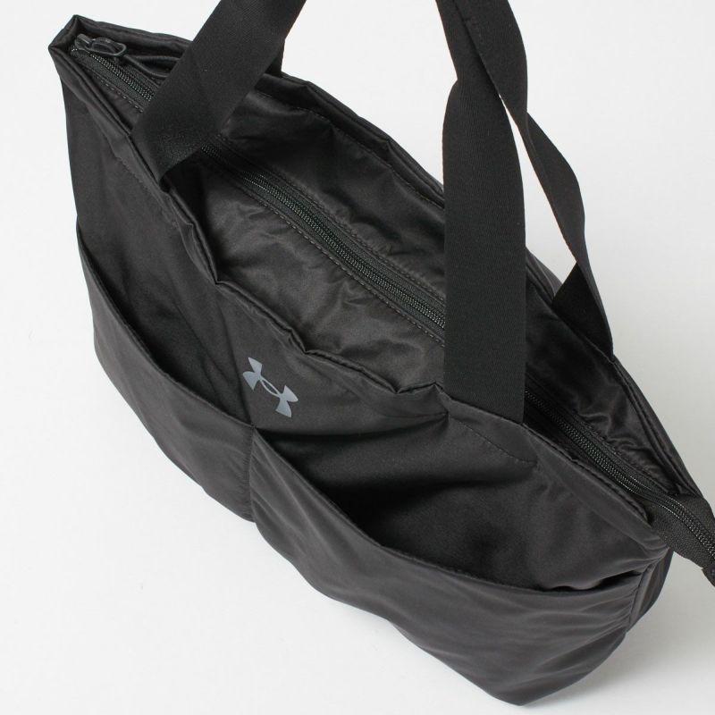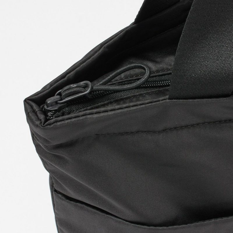 トレーニング用のアイテムはもちろん、一泊程度の荷物も余裕で入る16Lの大容量トートバッグ。撥水性のある軽量のポリエステル生地で仕立てた、日常使いに便利なアイテムです。ファスナー付きなので、たっぷり収納しても中身が見える心配がないのも嬉しいポイント。前ポケットは、頻繁に出し入れするものを入れやすい深めの仕立てです。