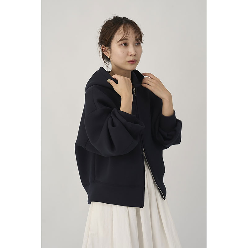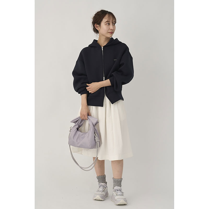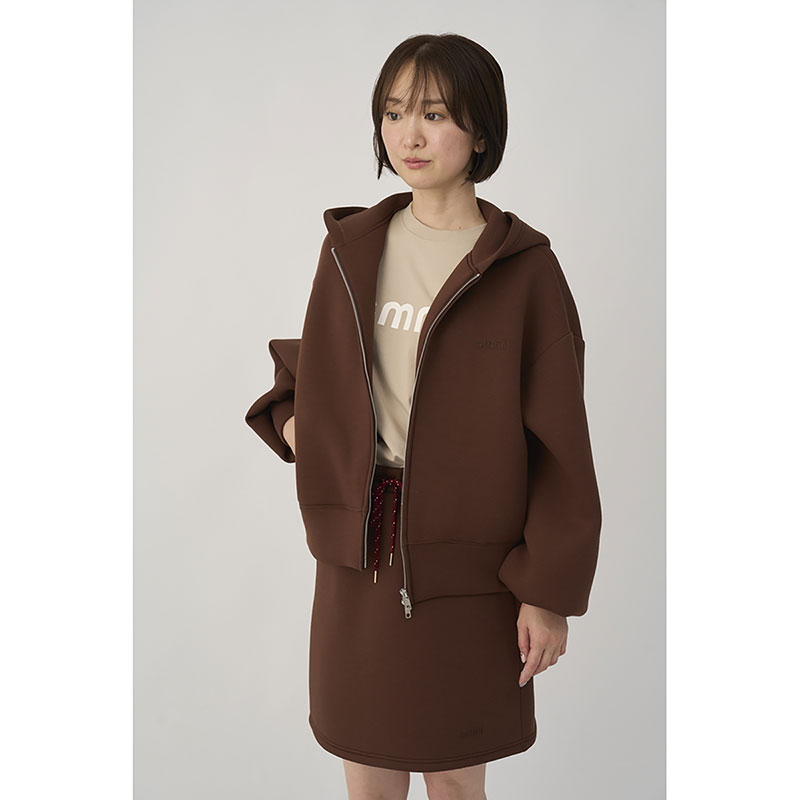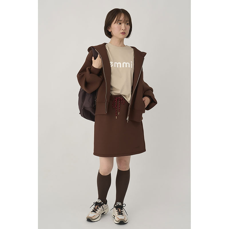 emmi定番のジップアップダンボールフーディーにemmiロゴ刺繍を施し、デザインをアップデート。身幅も少しゆとりを持たせ、女性らしさとスポーティーさがマッチするデザインに仕上げました。
