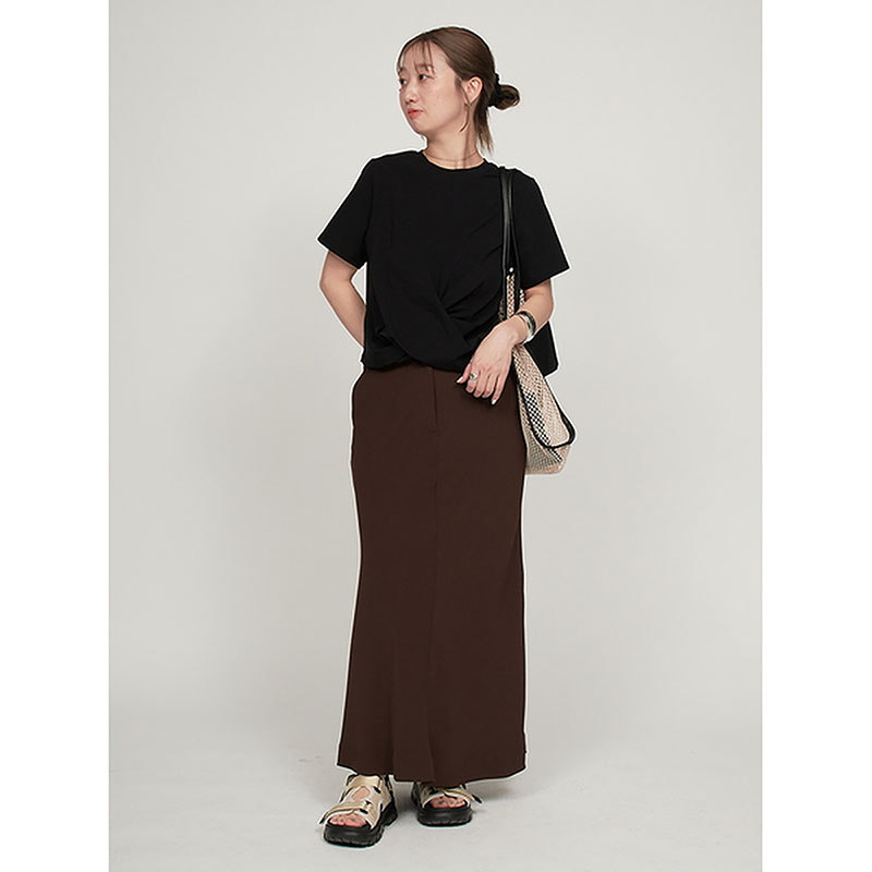 クロップド丈のねじりディテールをポイントにひとくせあるコーディネートが楽しめます。