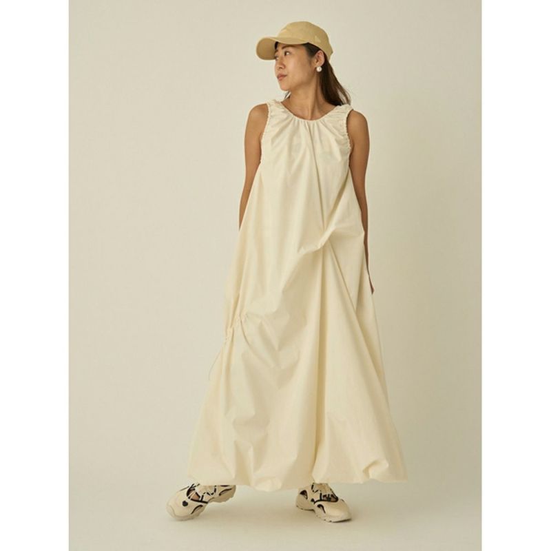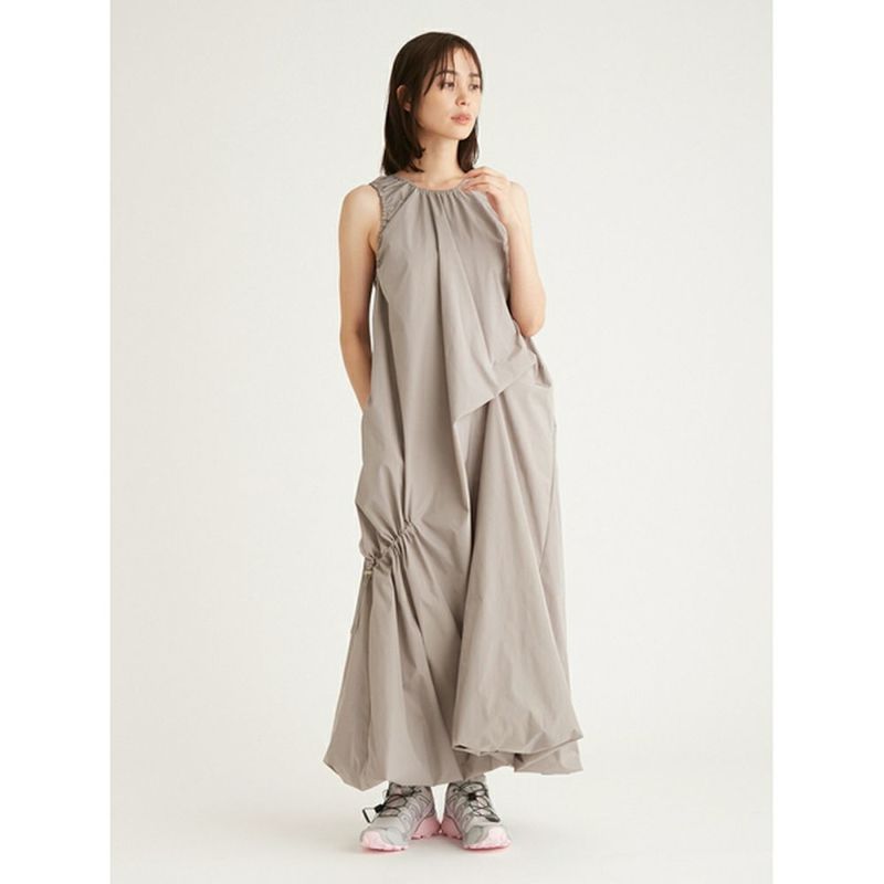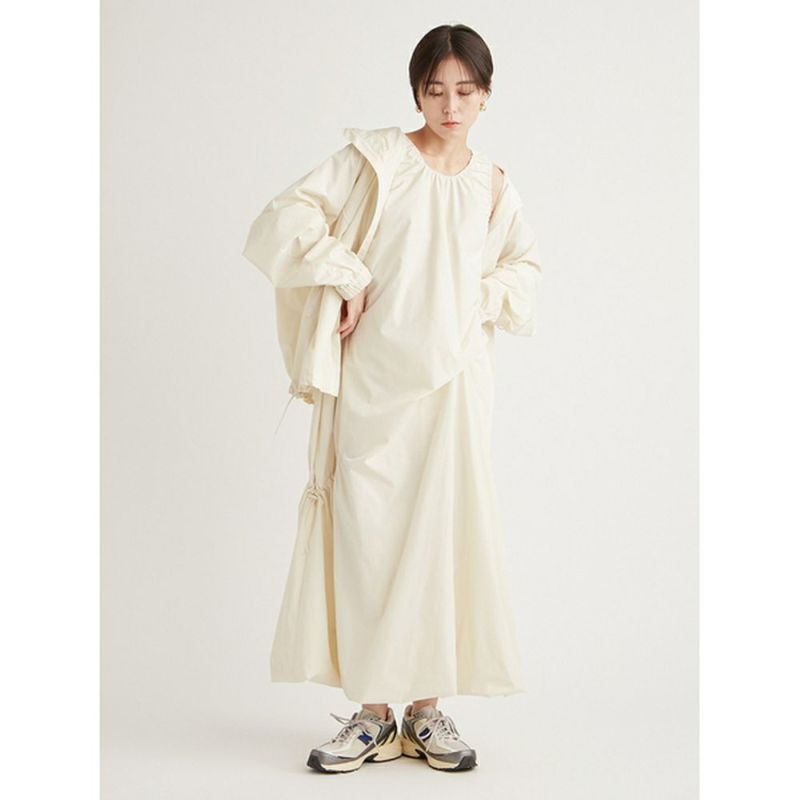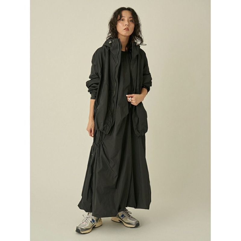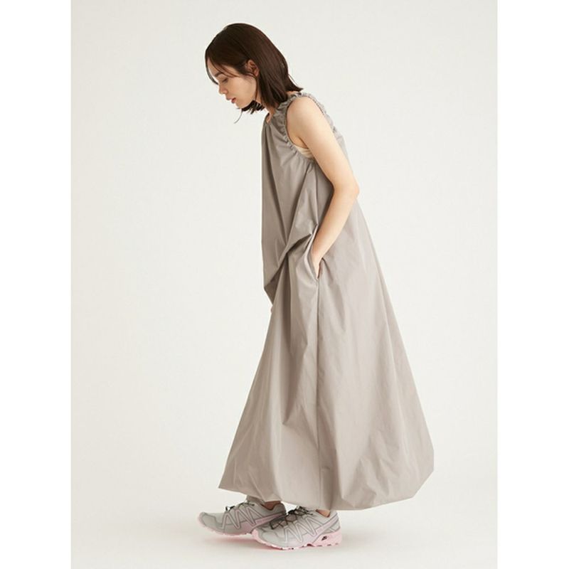 1枚で着映えするワンピースは、ナイロン素材でスポーティーな印象なのでスニーカー合わせがオススメ。同素材のブルゾン【13WFJ251029】とセットで合わせても素敵です。