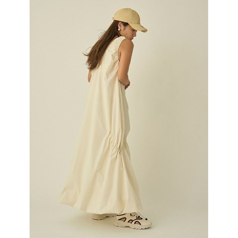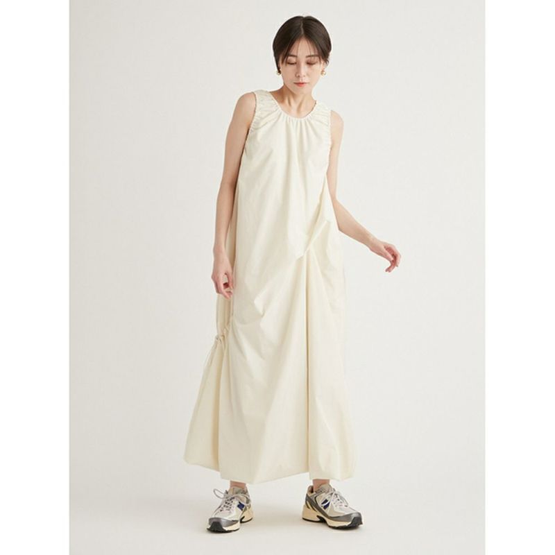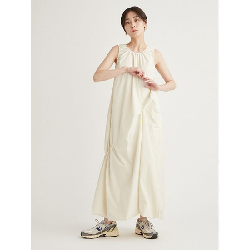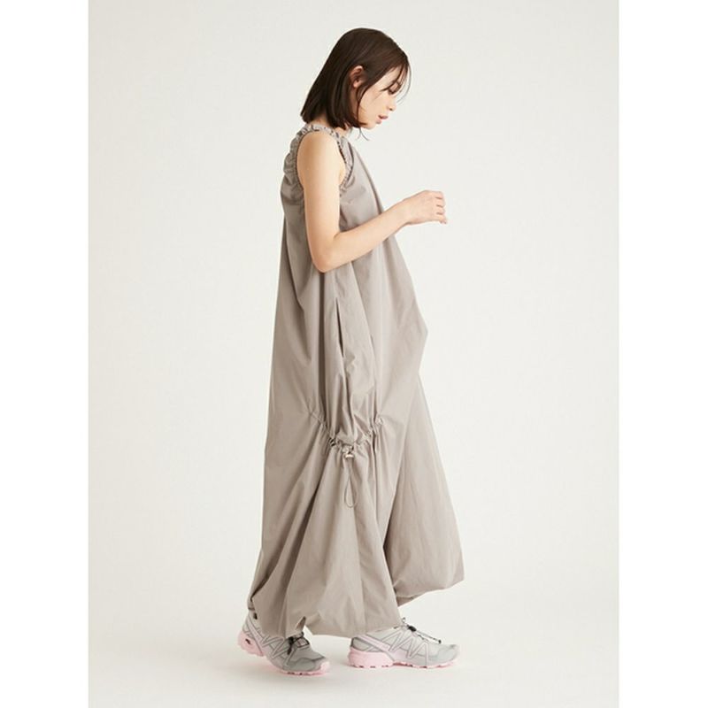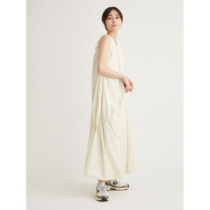 1枚で着映えするワンピースは、ナイロン素材でスポーティーな印象なのでスニーカー合わせがオススメ。同素材のブルゾン【13WFJ251029】とセットで合わせても素敵です。