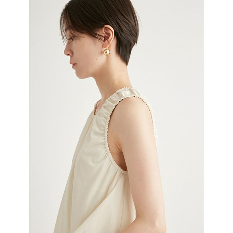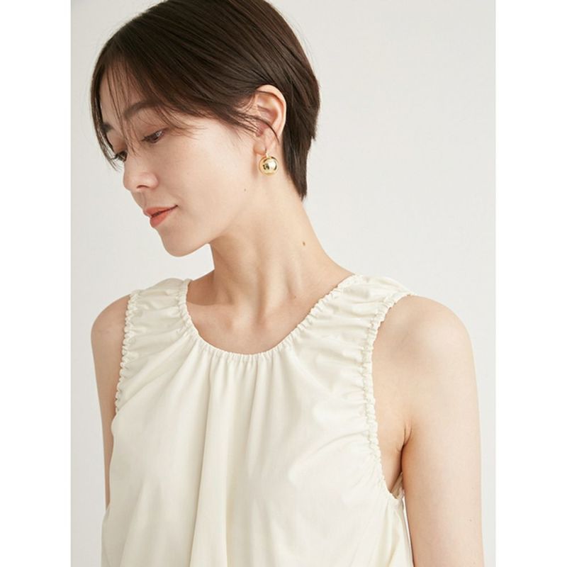立体感のあるタックと、スポーティーなドロストを組み合わせたアシンメトリーのデザインで、