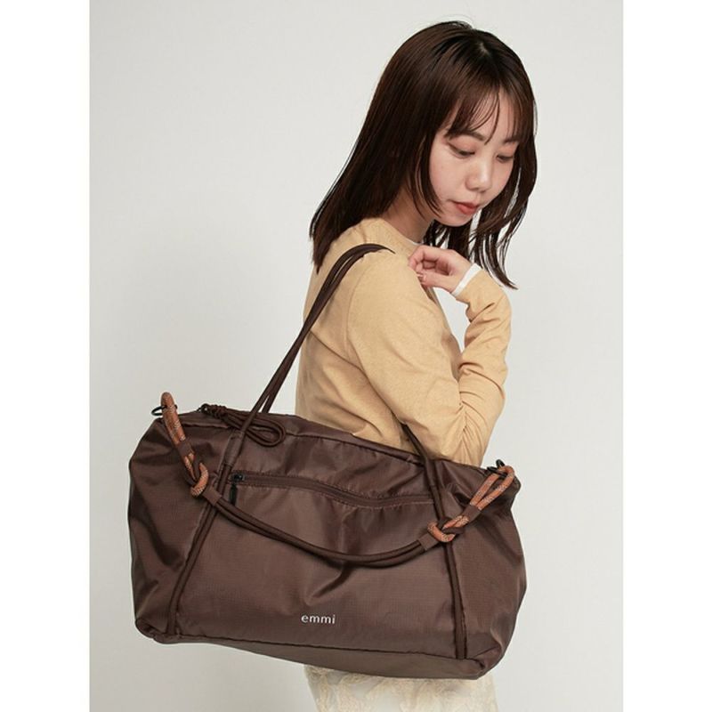 軽量でスポーティーなナイロントートバッグ。大きめサイズなのでジムに行くときや、一泊旅行などにも活躍します。ショルダー付きなので斜め掛けも可能。ファスナー付きの収納口により、荷物が飛び出る心配もありません。形はベーシックでありながら、持ち手のコードがポイントです。