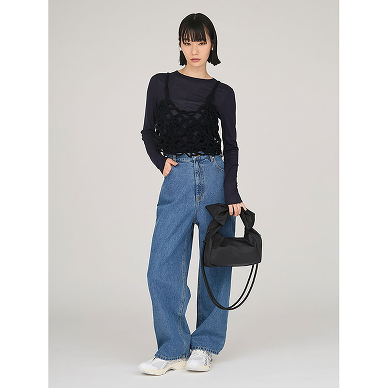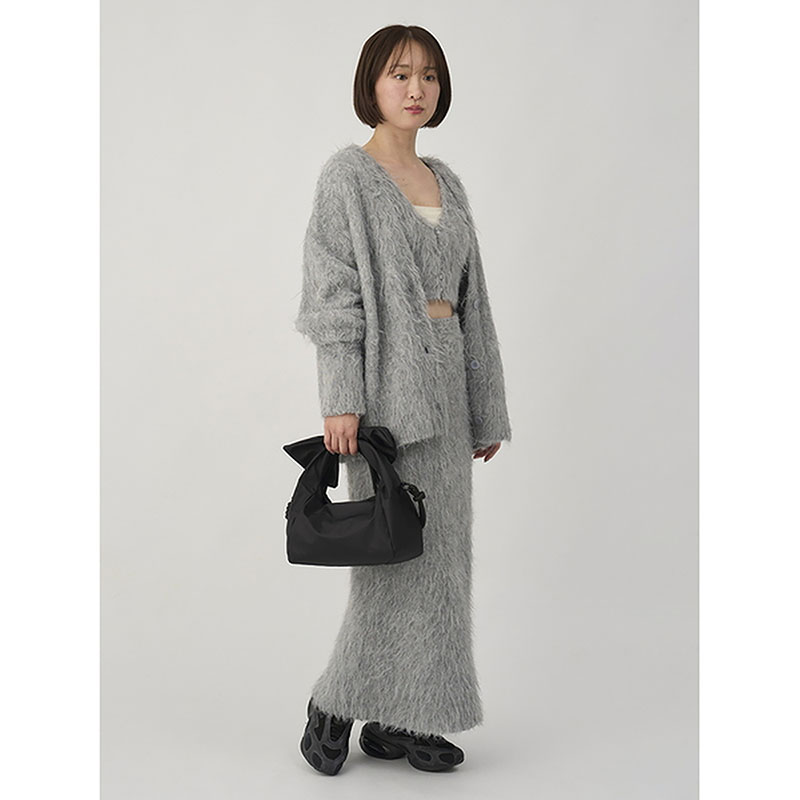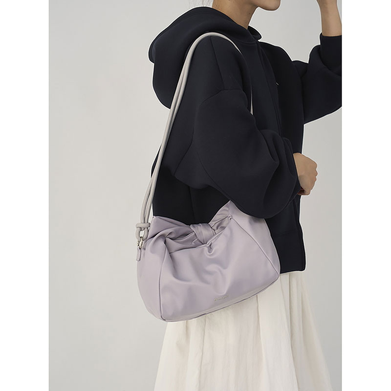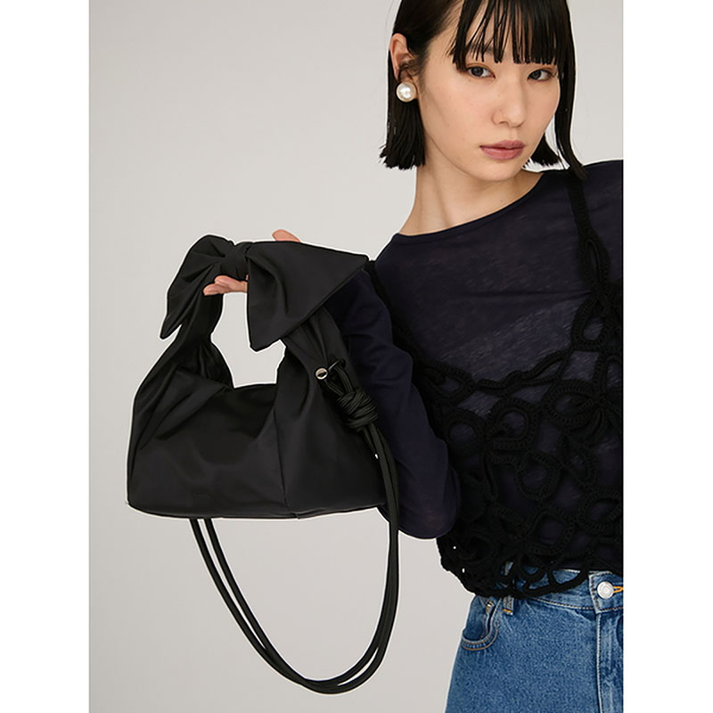 リボンデザインが施されたハンドルが特徴の小さめのバッグです。コーディネートのアクセントとして使えるデザインで、コンパクトながらも収納力もあります。さらに、ショルダーストラップは取り外し可能なので、その日のスタイルに合わせて変化できるバッグです。カジュアルやシンプルなコーディネートにアクセントとしてオススメのバッグです。