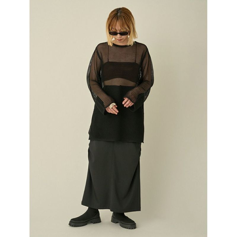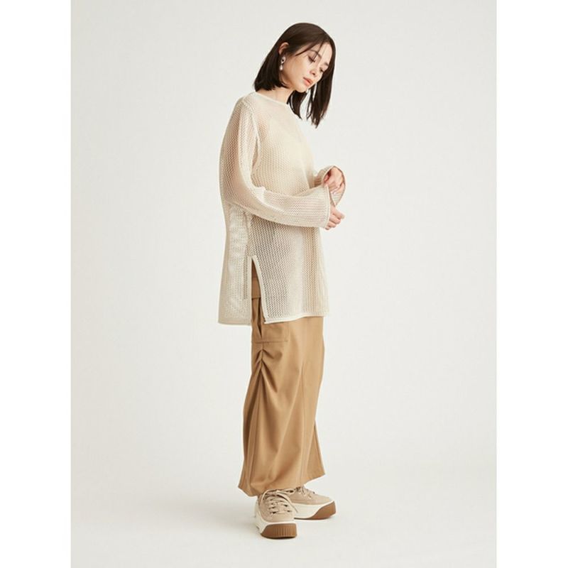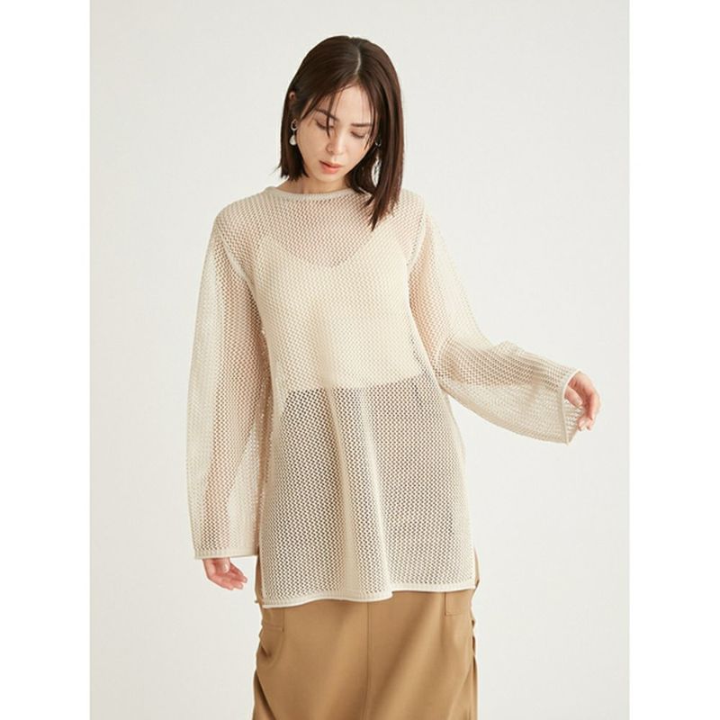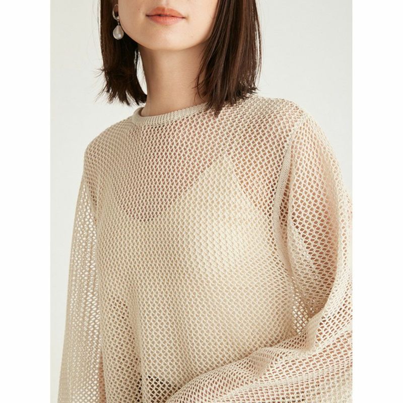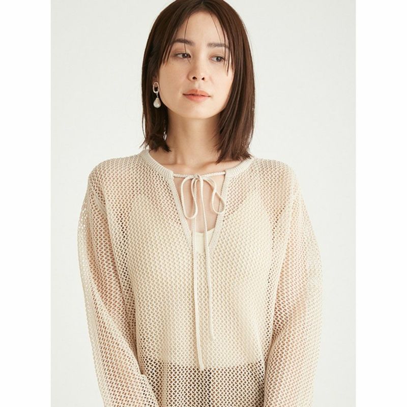 インナーにキャミソールやタンクトップを合わせ、程よい肌見せが叶うメッシュニットは、春から初夏にかけて1枚持っておくと重宝します。