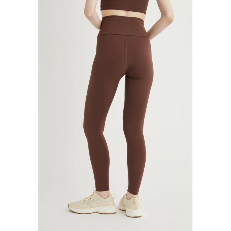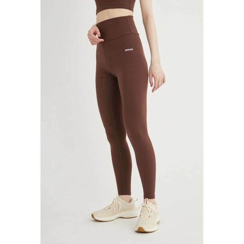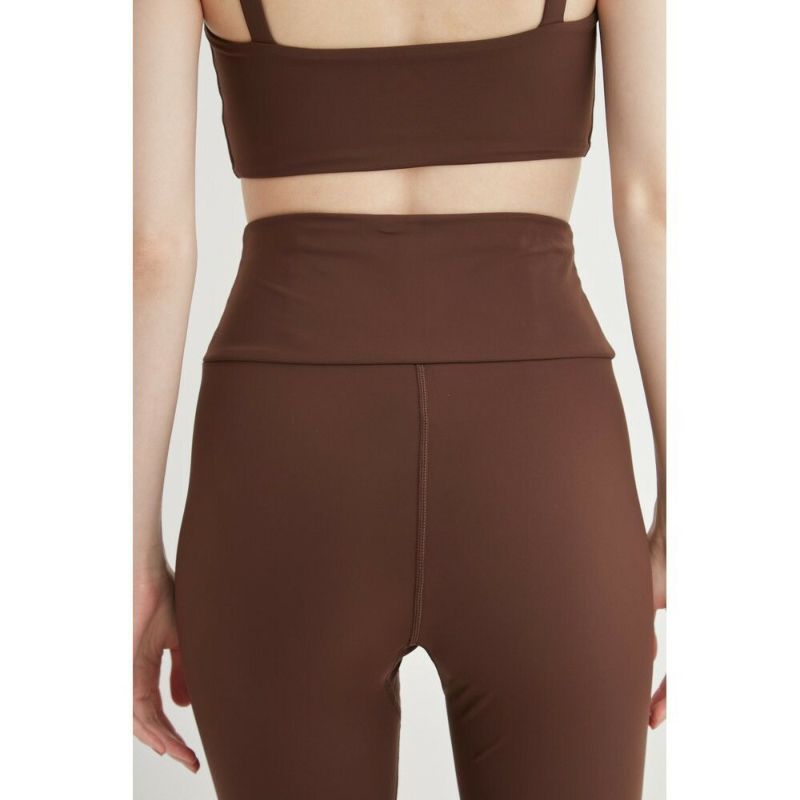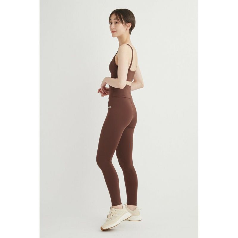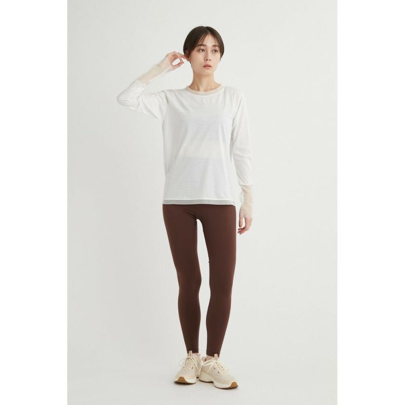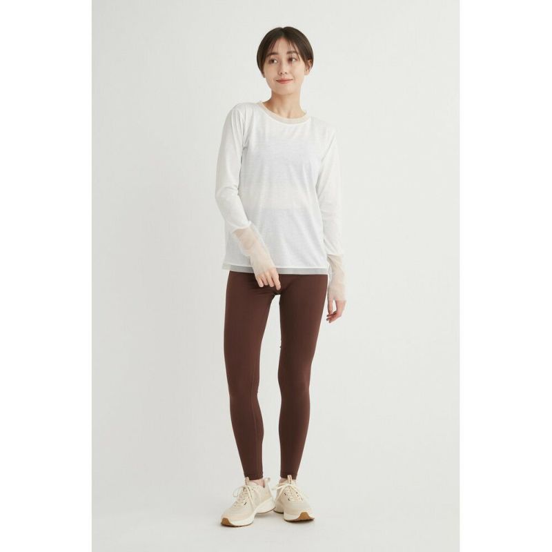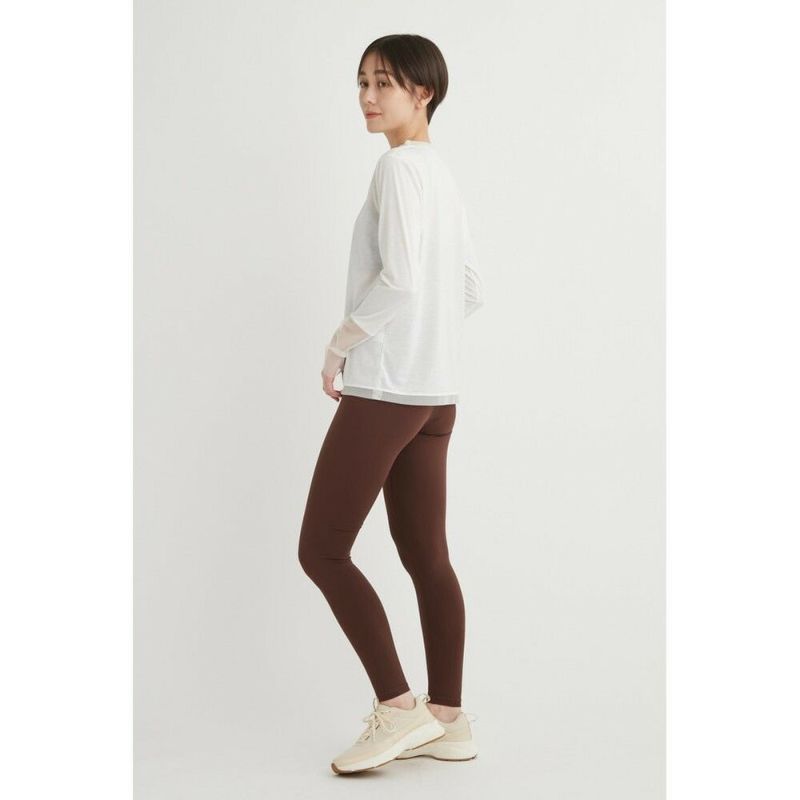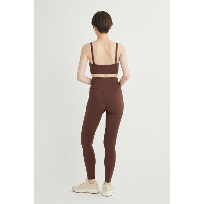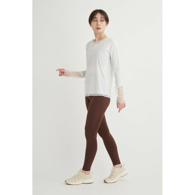 リサイクル繊維を使用した、サスティナブル素材のレギンス。ウエストヨーク丈をしっかり長めとってあり、お腹周りの安心感&脚長効果もあるシルエットのデザインになっています。
