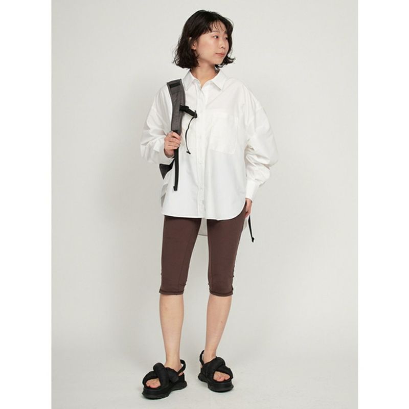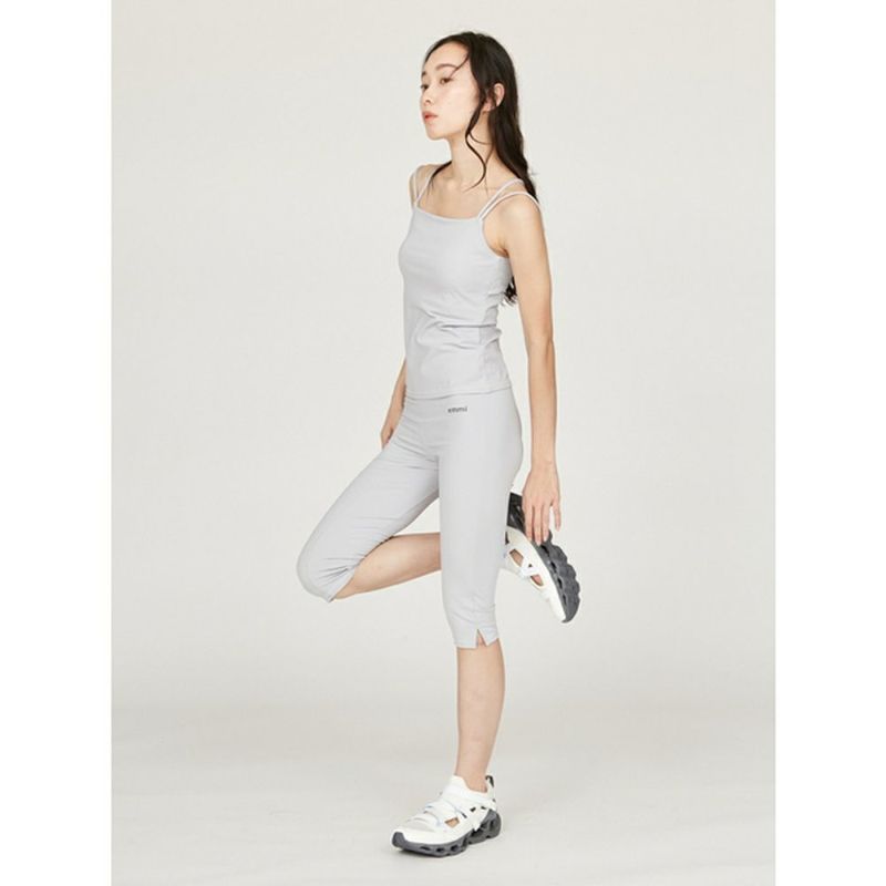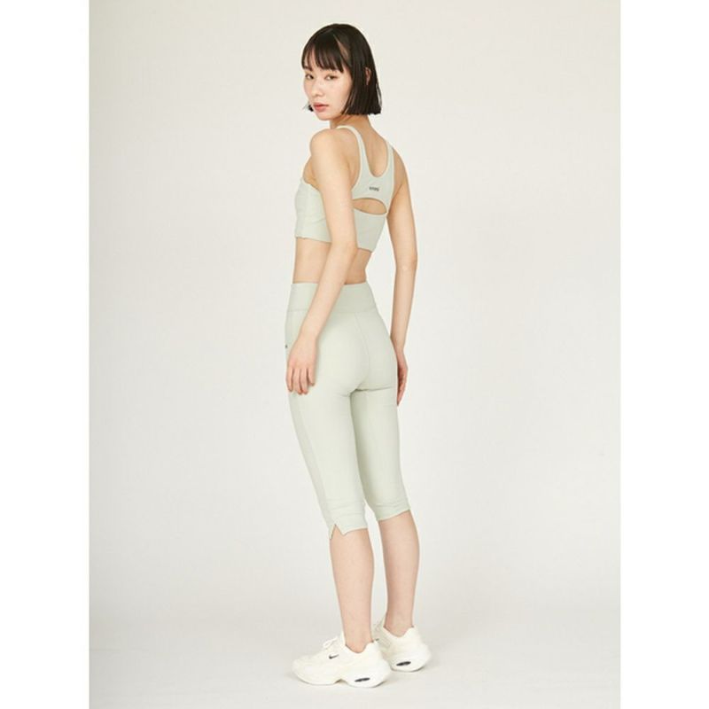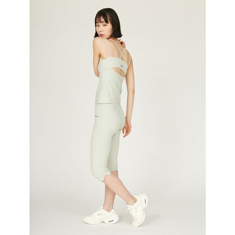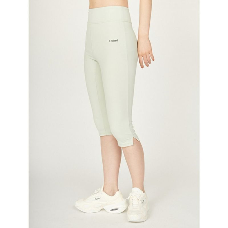 膝下丈のハーフレギンス。後ろヨーク部分には隠しポケットが付いており、伸びるのでスマートフォンも入れる事ができるのもポイントの一つ。毎日をアクティブに過ごす女性のエクササイズや、合わせ方でデイリーウェアとしても活躍するシーンレスなアイテムです。