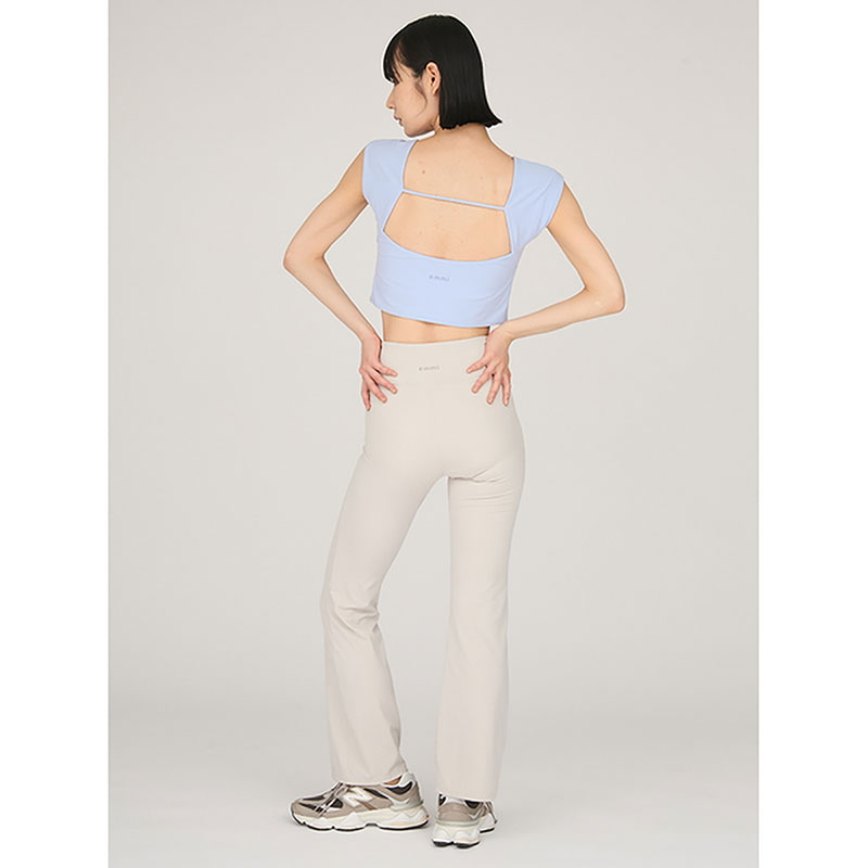 背中が大胆に開いたデザインが特徴的なカップ付きトップス。フレンチスリーブデザインで、着丈は程よく短めなので、普段使いにもぴったり。さらに、アクティブウェアとしても活躍する一枚です。快適なカップ付きで、動きやすさとスタイルを両立させたアイテムです。