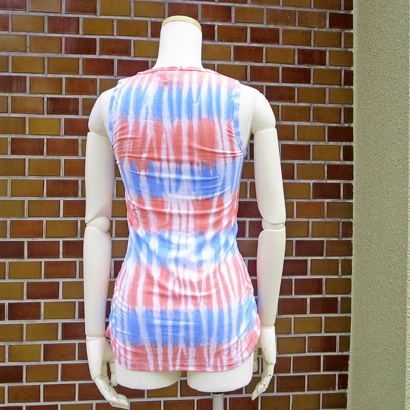 ヨガにかぎらず、普段使いのインナーとしても愛用できる、美しいタイダイ・タンクトップです。
