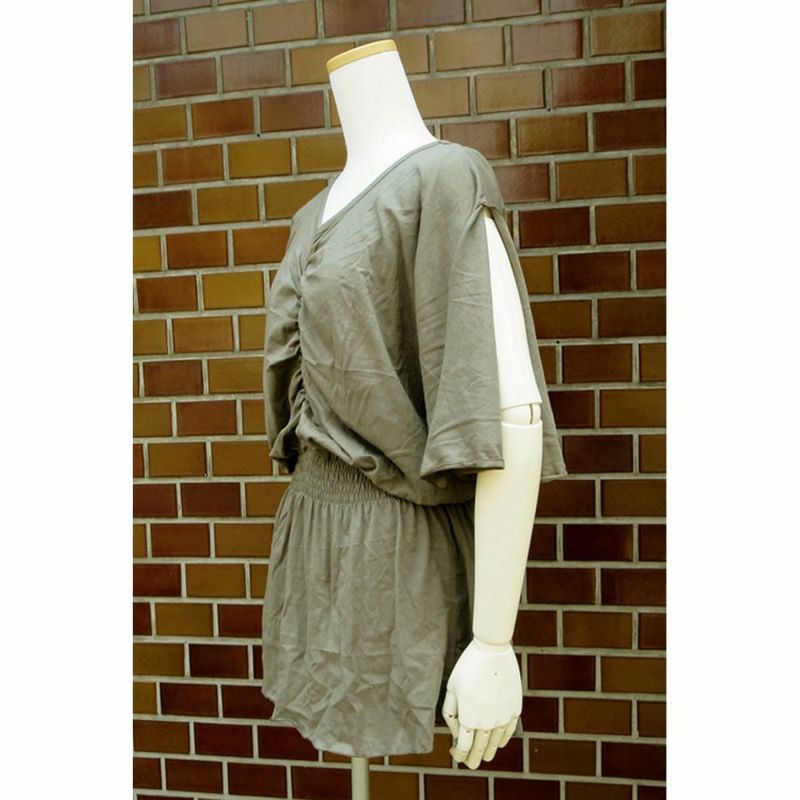 胸元とウェスト部分に細かくシャーリングをとり、全体のシルエットをエレガントに仕上げました。