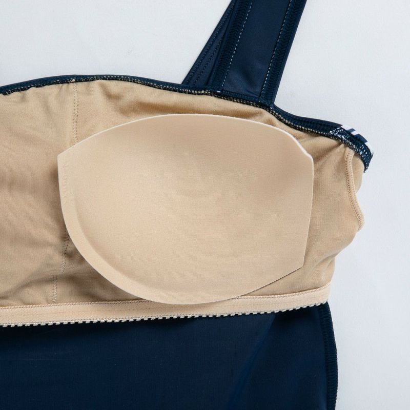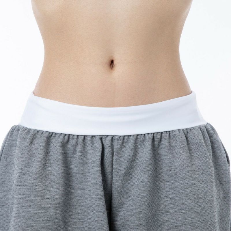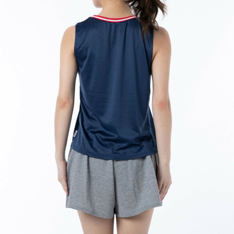 バスケットのユニフォームのようなランニングスタイルのトップスにショートパンツの組み合わせ。中のタンキニは、脇にロゴプリントをあしらったトレンドのデザイン。タンキニのままでもランニングを着てもどちらでも、おなかが隠れるデザインなので、露出したくないスポーツ大好き女子にぴったり!