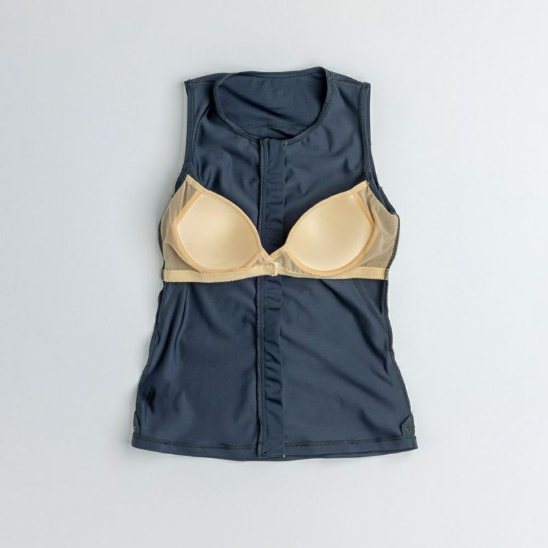 ヒップラインが気になる方におすすめ、華やかなプリントの「2in1」パンツのフィットネス水着。ボトムスが腰回りのボディラインを目立たせずに、ふんわりしたシルエットを保ちます。トップスはジッパー付きで着脱簡単、トップスとボトムスを留めるスナップボタンがめくれを防止して安心。ブラカップ付属。ボトムスは裏地付き、股下7cm(Mサイズ)。
