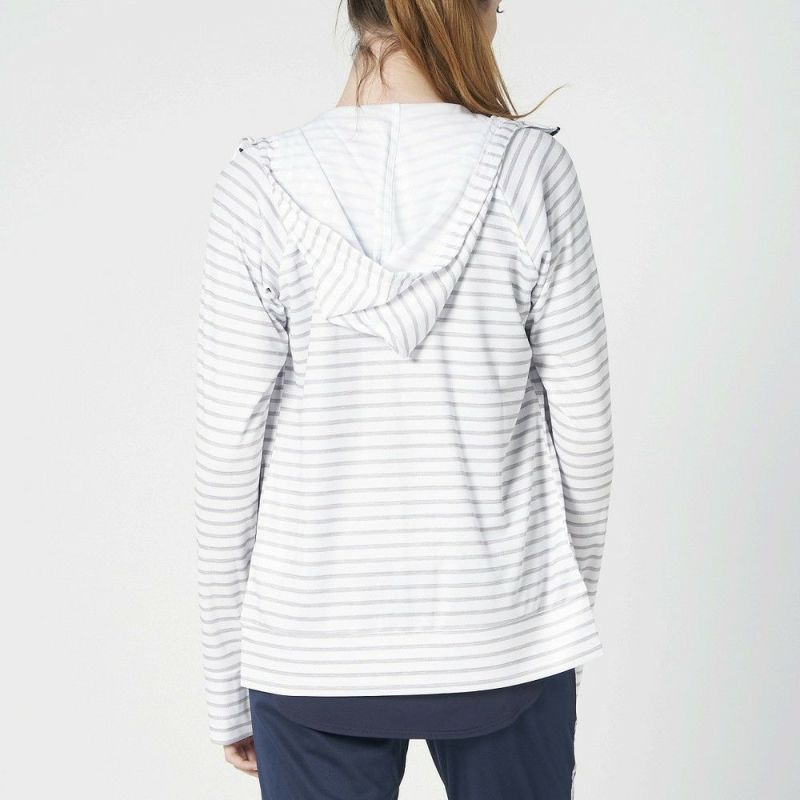 水陸両用 ボーダー柄UVラッシュパーカー。水陸両用、軽いカノコ素材のパーカーです。シンプルでスポーティな杢ボーダープリント。胸部分にロゴ入り。