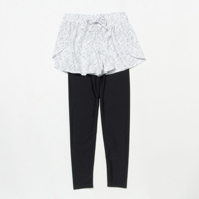 スカート見えするフレアシルエットのパンツと、シンプルなレギンスのセットアイテム。水に濡れても安心な水陸両用の素材を使用しているので、ホットヨガ・サップヨガはもちろん海やプール、フェスなど、マルチに活躍します。レギンスのウエスト部分あしらわれたブランドロゴもポイントです。セットではもちろん、それぞれ単品でもお使い頂けます。フレアシルエットが可愛らしいデザインで、またヒップ周りを隠してくれるので女性に嬉しいアイテムです。