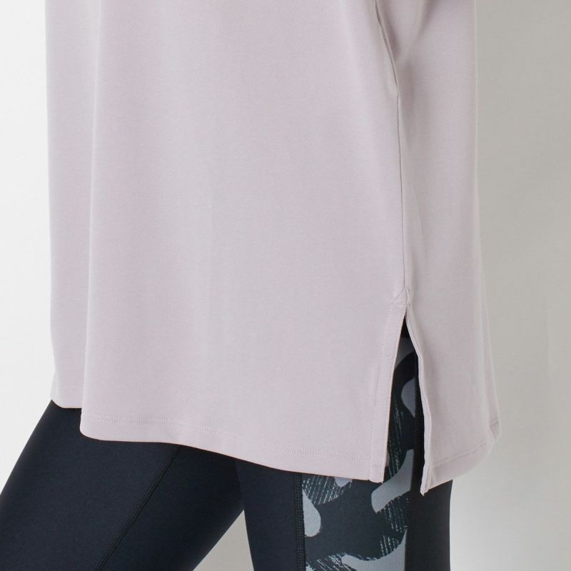 ボディラインを拾わないゆったりとしたシルエットがリラクシーなTシャツ。ストレッチ性に優れ、柔らかな肌触りで着心地の良い一枚です。腰回りをカバーしてくれる長めの着丈も嬉しいポイント。両サイドにはスリットが入っているので、前裾のみインしたスタイリングも楽しめます。