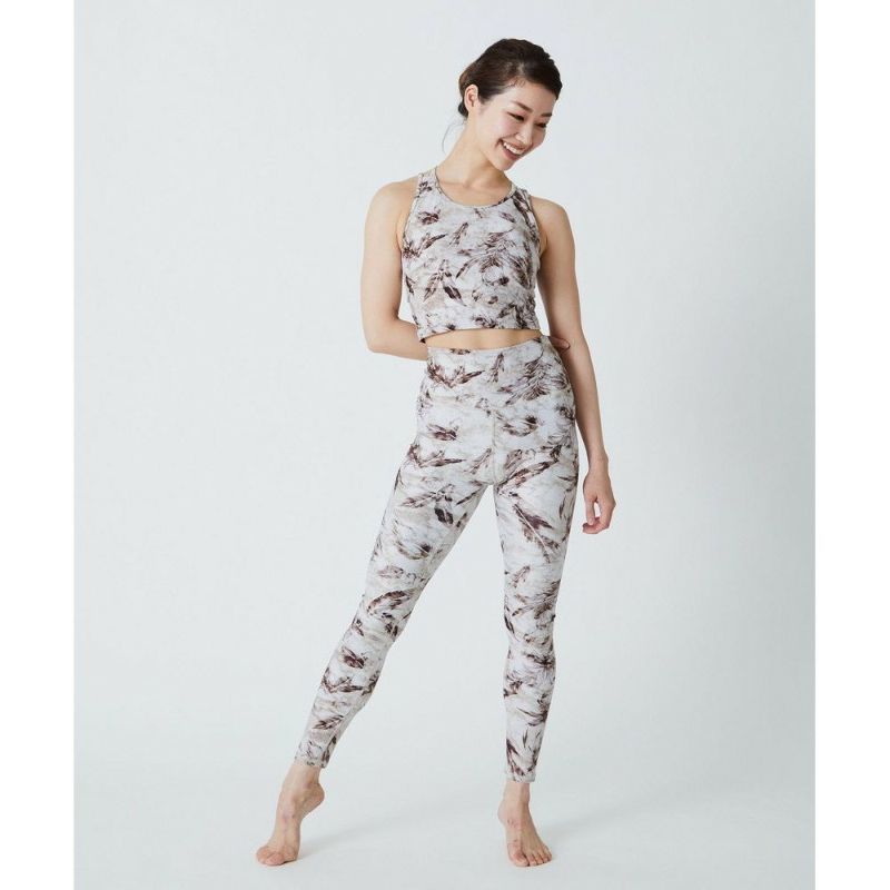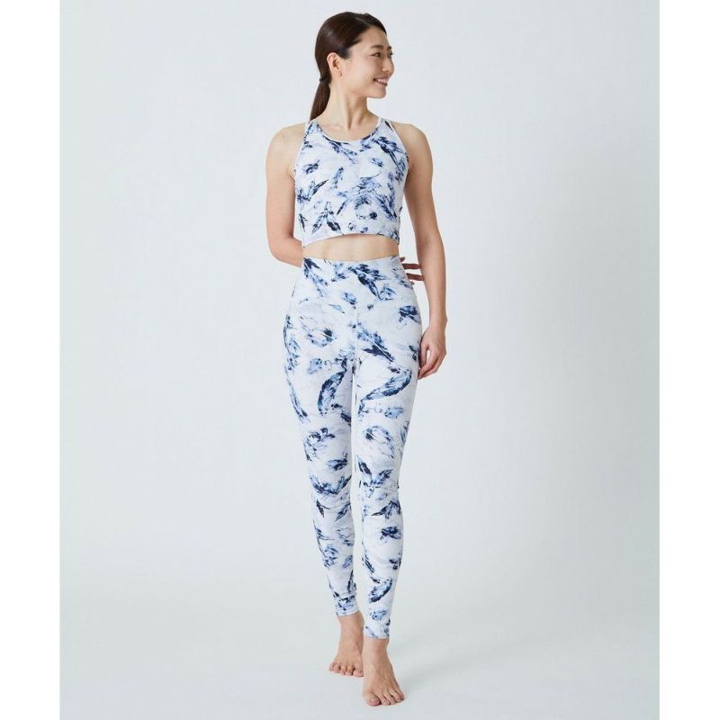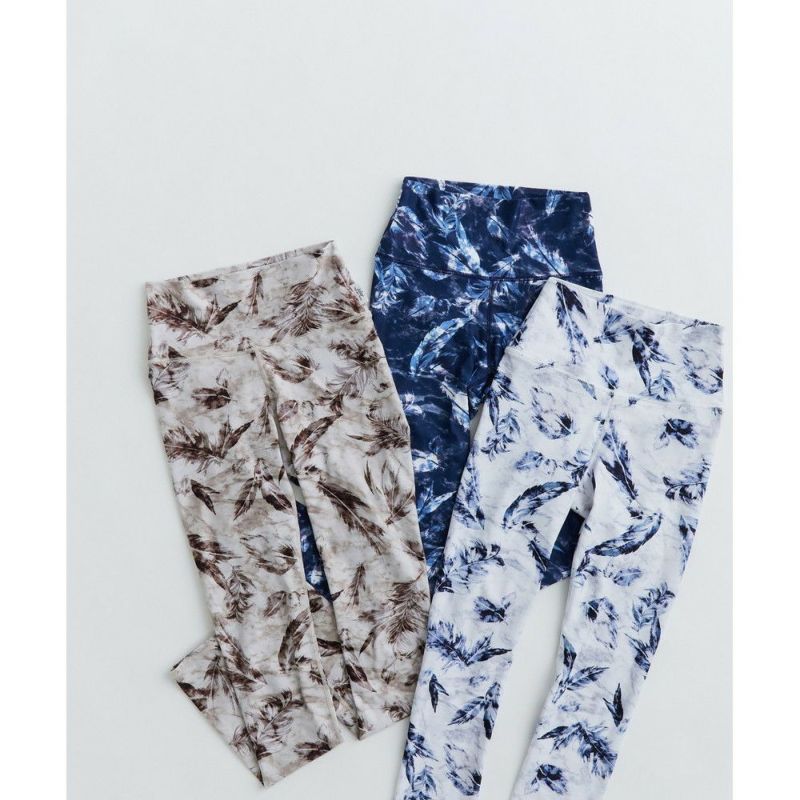 【HOTYOGA】【SWIMMING】定番のプリント生地より厚みがあり耐久性がアップしています。(ローズフラワーと同じ生地) 単色のフェザープリントはコーディネートしやすいです。大理石の上に羽がふわっと落ちているシーンを想像して作りました。