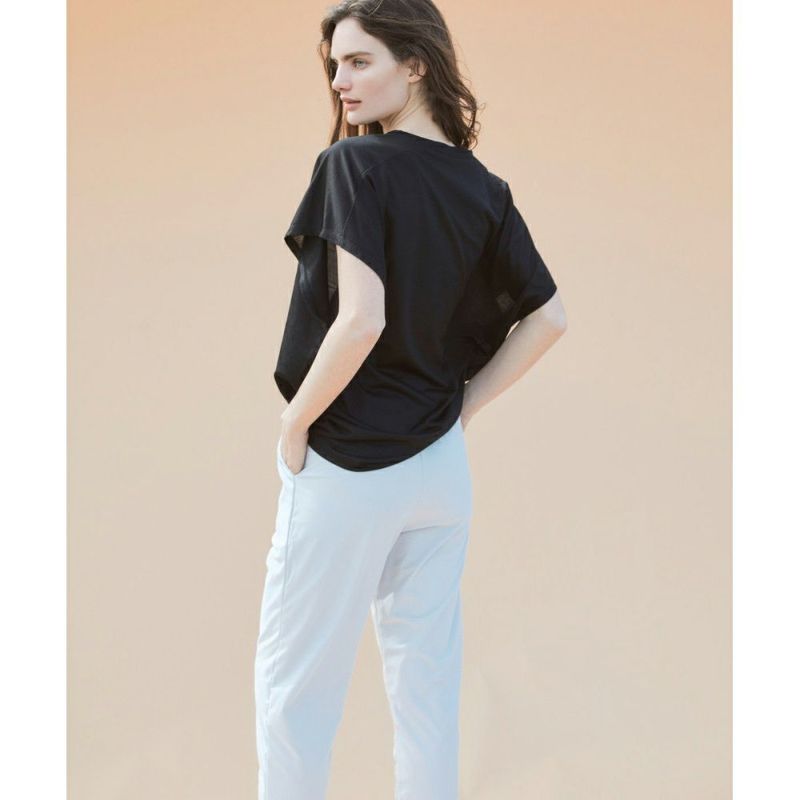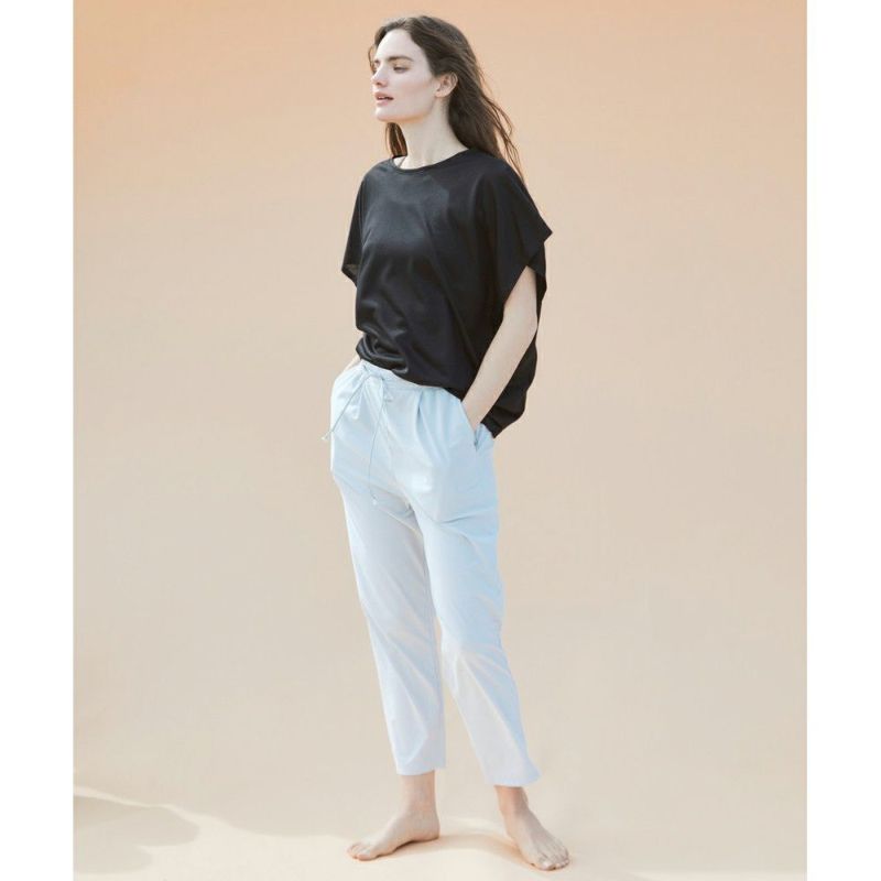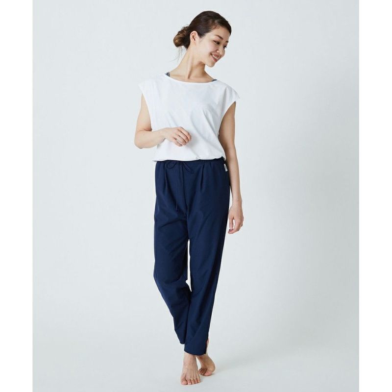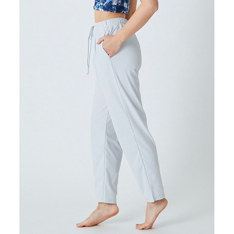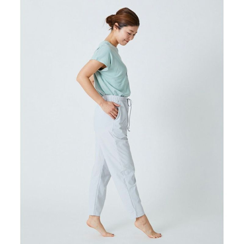 デイリーからヨガやワークアウトにも使える高機能素材のリラックスパンツ。薄くて軽いさらりとした履き心地です。ヒップラインがすっきり見えるようパターンを工夫しています。透けにくい素材なのでライトグレーでも安心です。UVカット性もあり、洗濯機可のイージーケア商品なので、ビーチやアクティブな旅行のお供にもおすすめです。