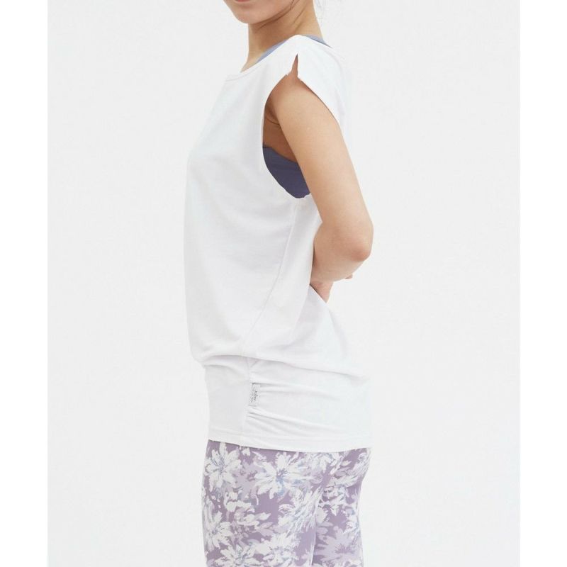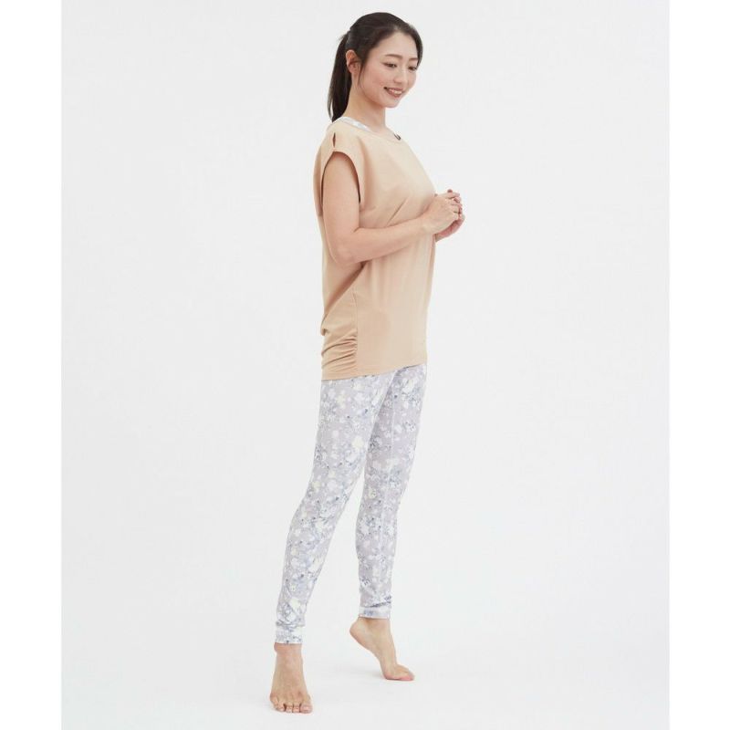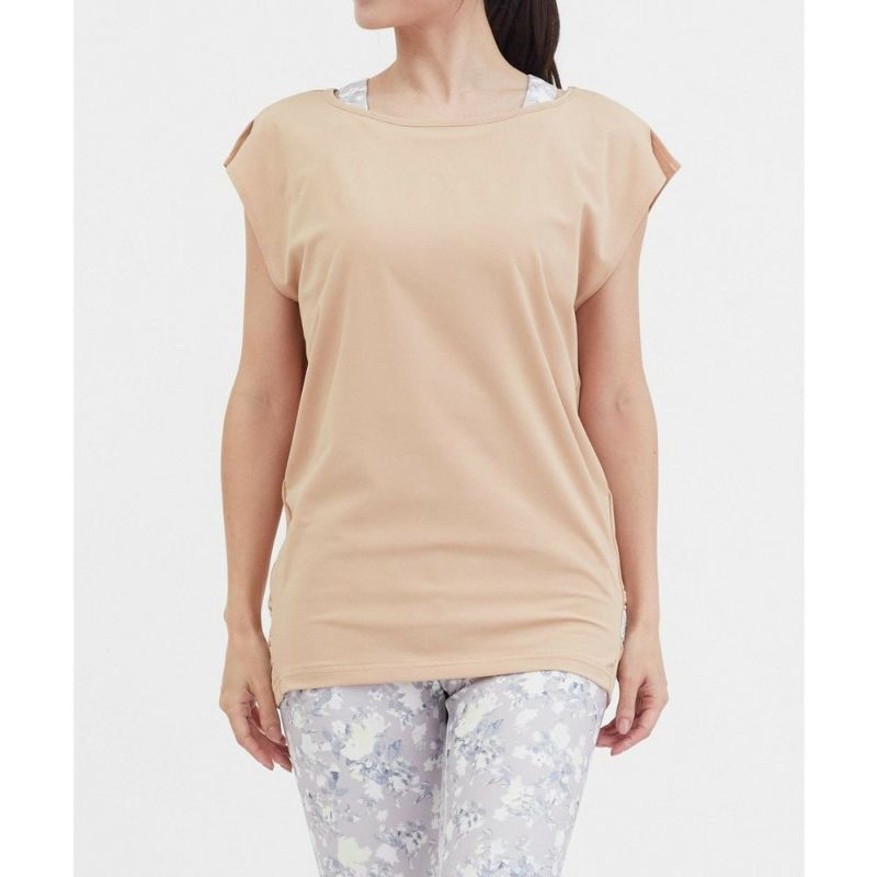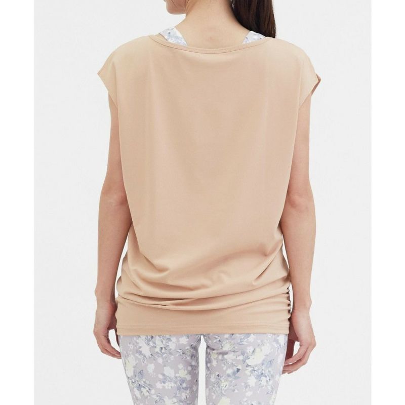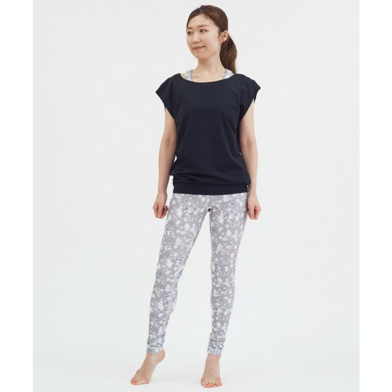 腰のフィット感で逆転のポーズも安心、肩のスリットで腕が上げやすい、など細部のディテールを工夫し初めてヨガをする方にも快適に動いてもらえるようなデザインにしています。さらにお尻が隠れる着丈は動いていても安心感があります。