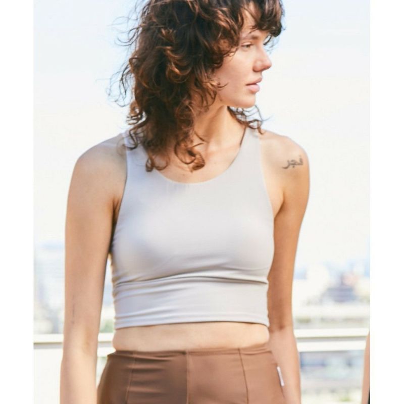 身体にフィットするショートトップスはアクティブなシーンでも動きを制限する事なく快適です。ハイウエストレギンスと合わせるとお腹が出すぎず安心して着て頂けます。