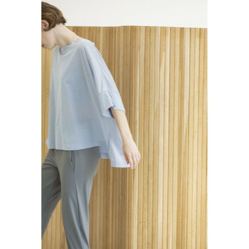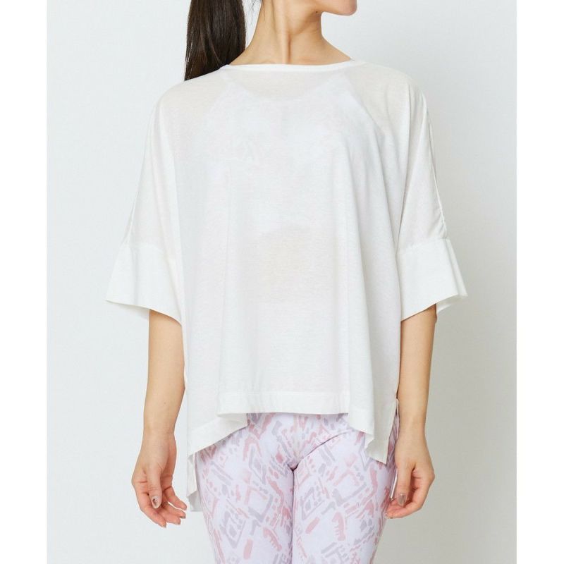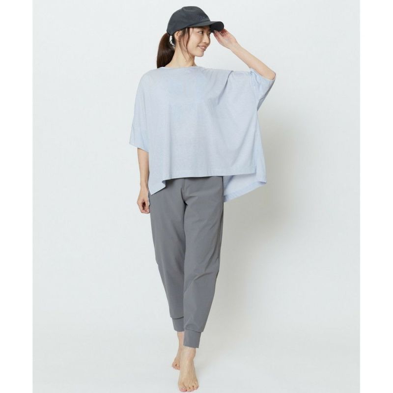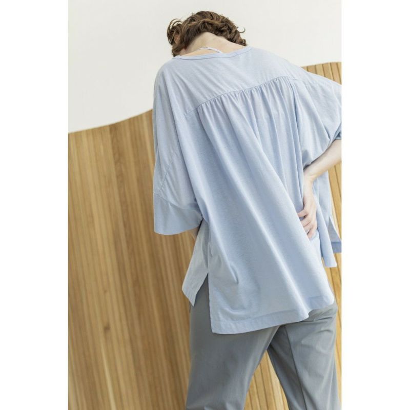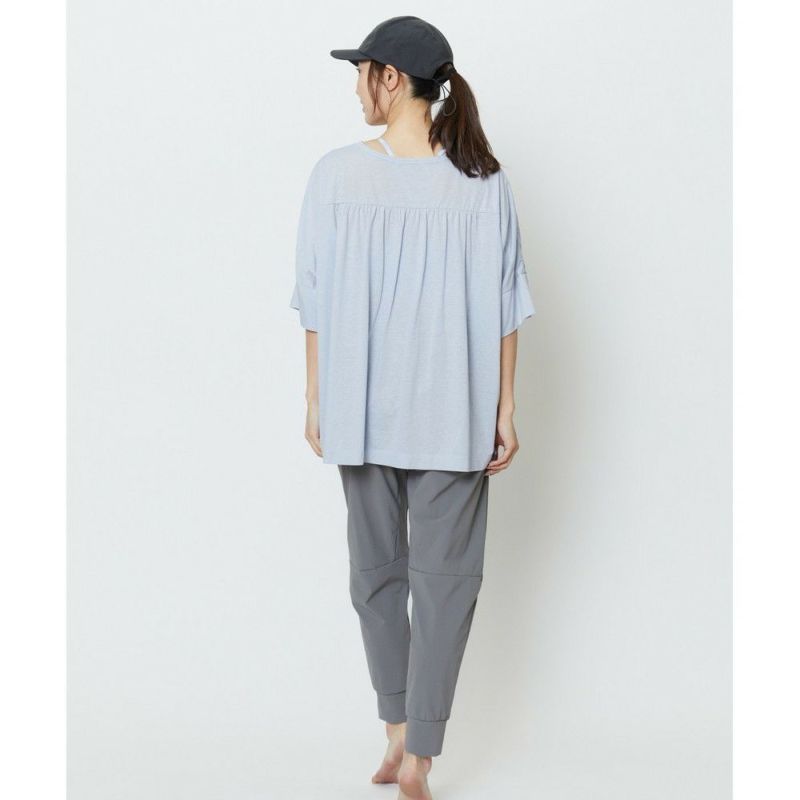 動くたびに揺れる広い身幅と後ろのギャザーで真夏も涼しく、ヨガウェアの上にさらっと着用頂けます。デイリーからリラックスシーンに最適な1枚。廃棄予定の素材を使用しています。