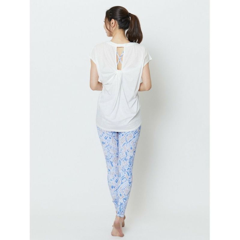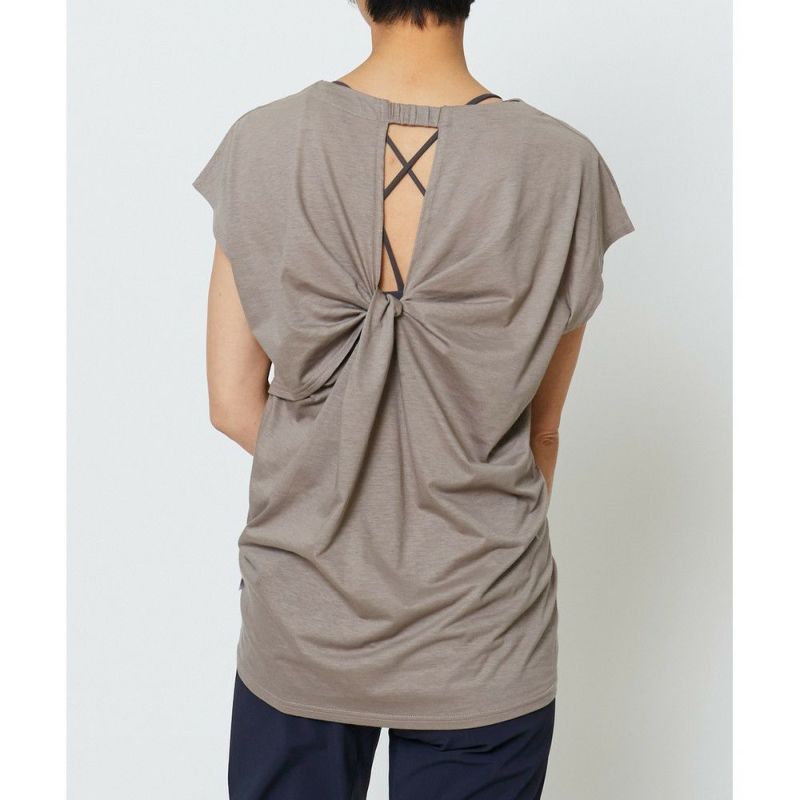 後ろのクロスデザインがポイントのトップスです。お尻を包み込むカッティングなので逆転のポーズもめくれず安心して着用いただけます。裾をボトムにインしてデイリー使いにも活躍する1枚です。廃棄予定の素材を使用しています。
