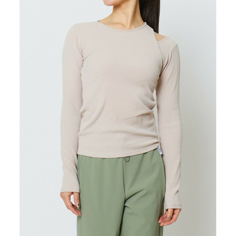 julier定番のリブ素材に新デザインが登場。アシンメトリーなカッティングにこだわり、ヘルシーな肌見せができるデザイン。パット付きで便利な1枚です。