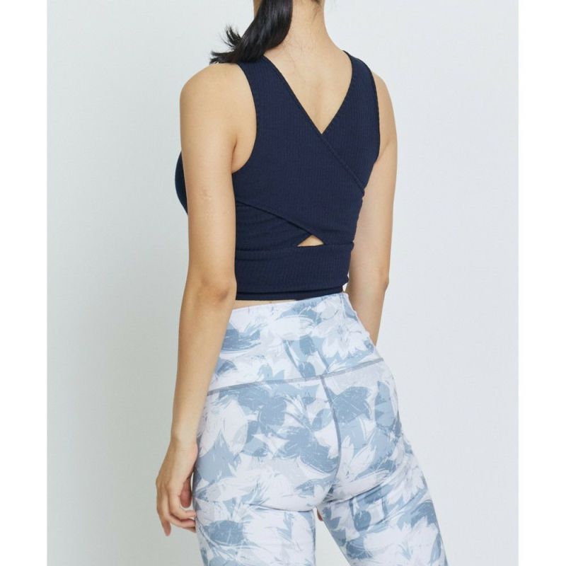 ジュリエ人気のリブ素材。バッククロスのショートトップスはヘルシーな肌見せができるアイテムです。ヨガインストラクターにも人気のデザインです。スパンの効いたリブ素材はよりアクティブなシーンにも対応できます。