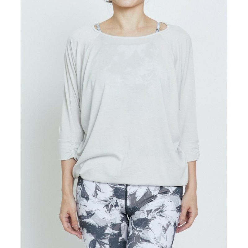 二の腕が隠れる袖丈が人気のデザイン。裾の斜めのラインが気になる腰まわりもすっきり見せてくれます。肌触りの良いジュリエ人気の素材です。