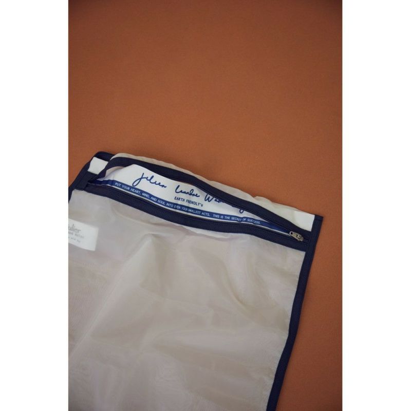 洗濯時のマイクロプラスチックの流出を防ぐ、フィルター付きのランドリーネット。通常の洗濯ネットは網目が大きく、衣類から出たマイクロプラスチックファイバーが排水路を通って、そのまま川や海に流出してしまいます。この洗濯ネットは、特殊な細かい網目がマイクロプラスチックファイバーをキャッチし、マイクロプラスチックの流出を軽減してくれるので、OCEAN FRIENDLYなお洗濯を実現してくれます。ヨガ後に使用したウェアを入れれば、そのまま洗濯機に入れられます。旅先のパッキングにも最適なサイズ感で、バッグの中でも可愛くて気分の上がるデザインにしました。