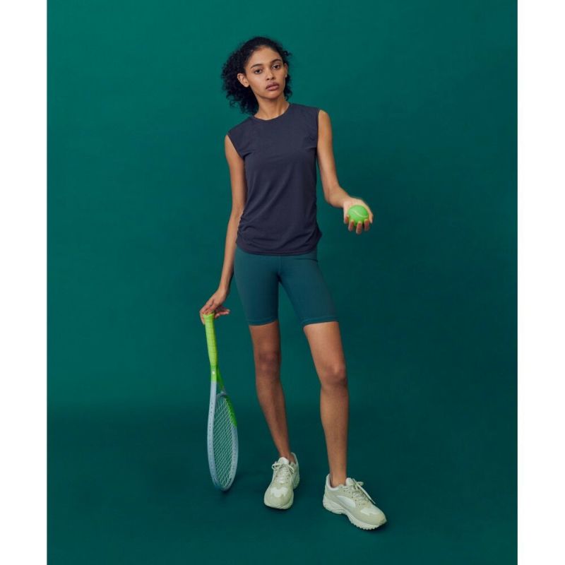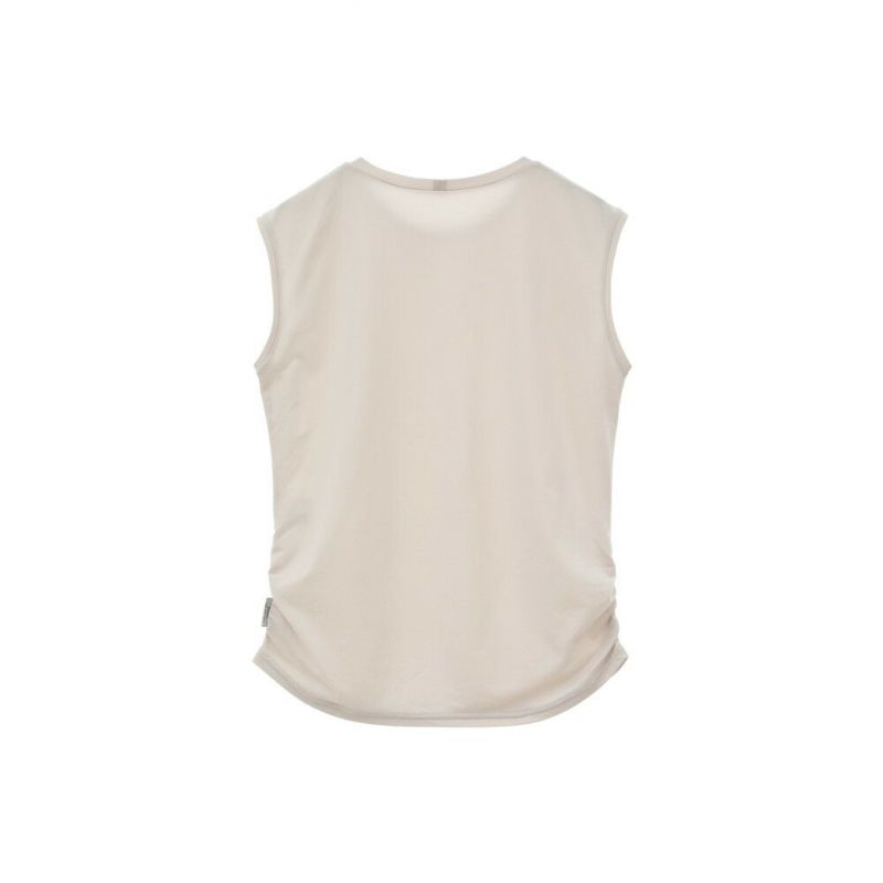 機能素材を使用したデイリーに着やすいノースリーブトップスが登場。ほどよく体に沿い、二の腕が細く見えるサイジングにこだわりました。裾にはサイドギャザーを施しアクセントを。デニムなどを合わせて普段着としてもおすすめの一着です。