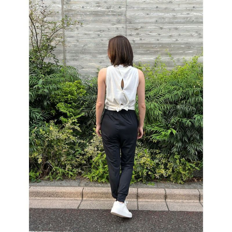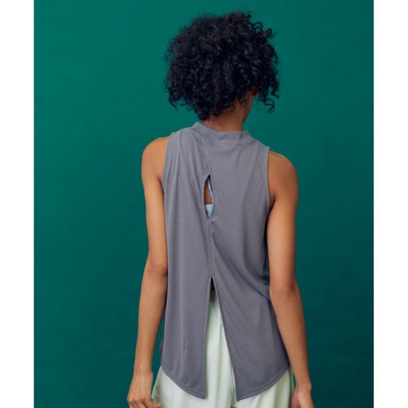 毎年大人気アイテムのアップデート!ハイネックデザインの機能素材2WAYプルオーバー。昨年のものより、より着やすいようにパターンを微修正しました。後ろのスリットを結ぶとダウンドッグなど逆転のポーズもめくれることなく安心です。背中のさりげない開きもアクセントに。速乾性の高い機能素材ですが、コットンの様な風合いを持ち、さらっとした着心地で夏場のお出かけにもおすすめです。