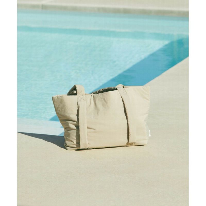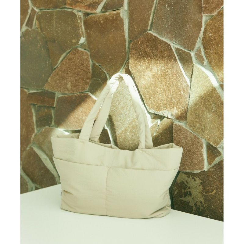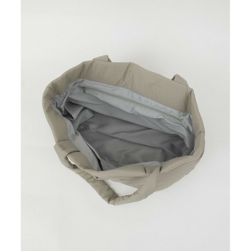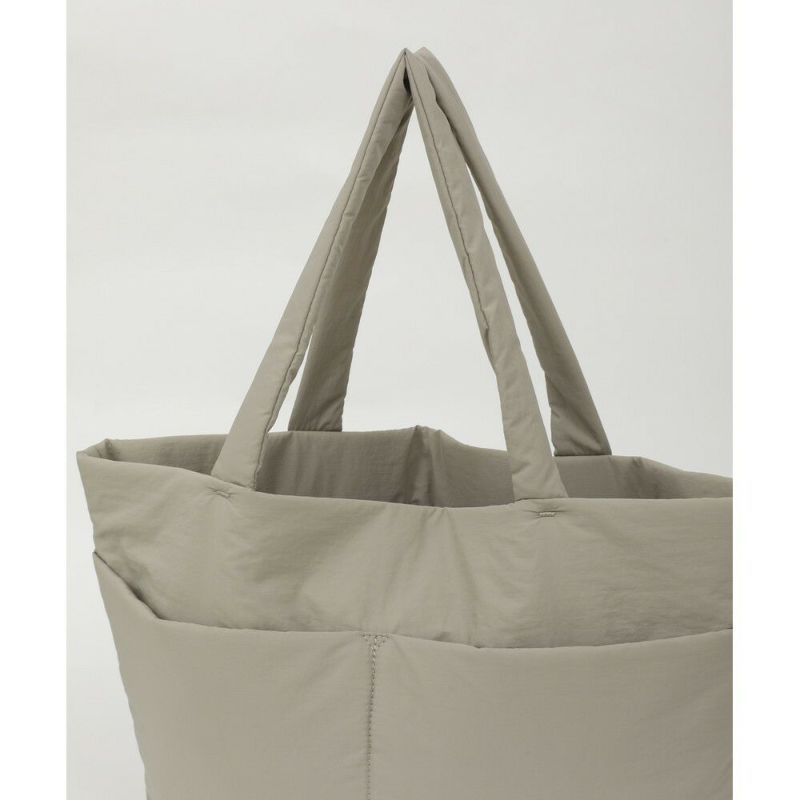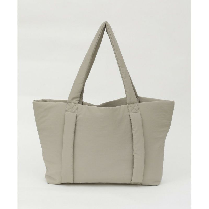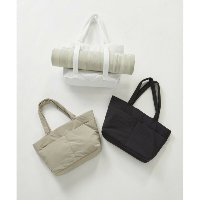 ふっくらと膨らむ立体感あるシルエットが魅力のパフィー生地を使ったトートバッグです。マットなナイロン生地が、カジュアル過ぎず、シーンを問わず使えるデザインに仕上げました。A4サイズやタンブラーを立てて収納できる大容量の大きさです。たくさん入るのに軽量なので仕事や旅行、マザーズバッグとしても活躍します。撥水加工生地なので、シーンを気にせず毎日のお出かけに心置きなく使えます。ヨガマットを挟む場所もあるので、ヨガマットの持ち歩きにもとても便利です。