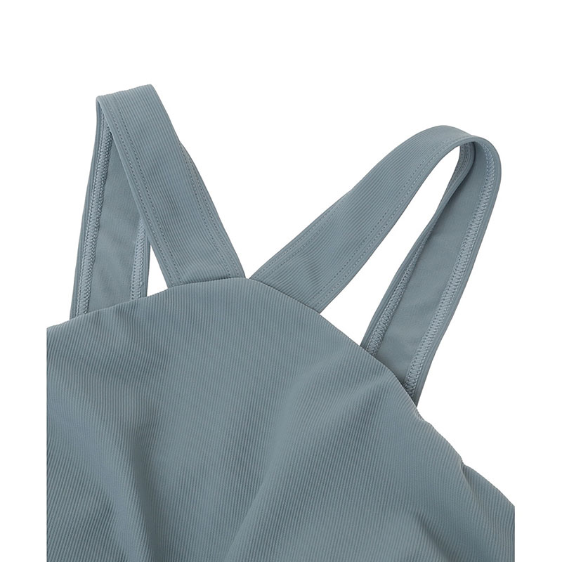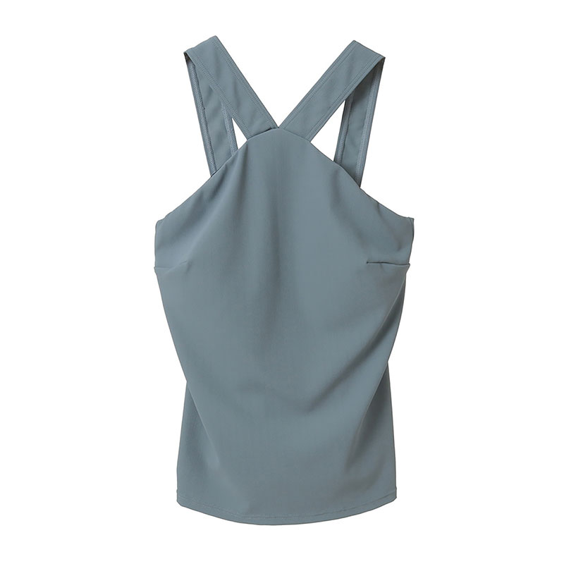 前後で異なるデザインが目を惹く、リブクロスキャミソール。フロントはクロスデザインでバストをしっかりホールドしつつ、バックは縦ストラップで抜け感を演出。前はしっかりホールドしつつ、後ろはアンダーバストにゴムがないストレスフリーな着心地。取り外し可能なパッド付きだから、インナーなしでも快適に着用できます。太めのストラップは肩への負担も軽減します。お腹が見える心配もなく、一枚で安心して着用できる一枚です。