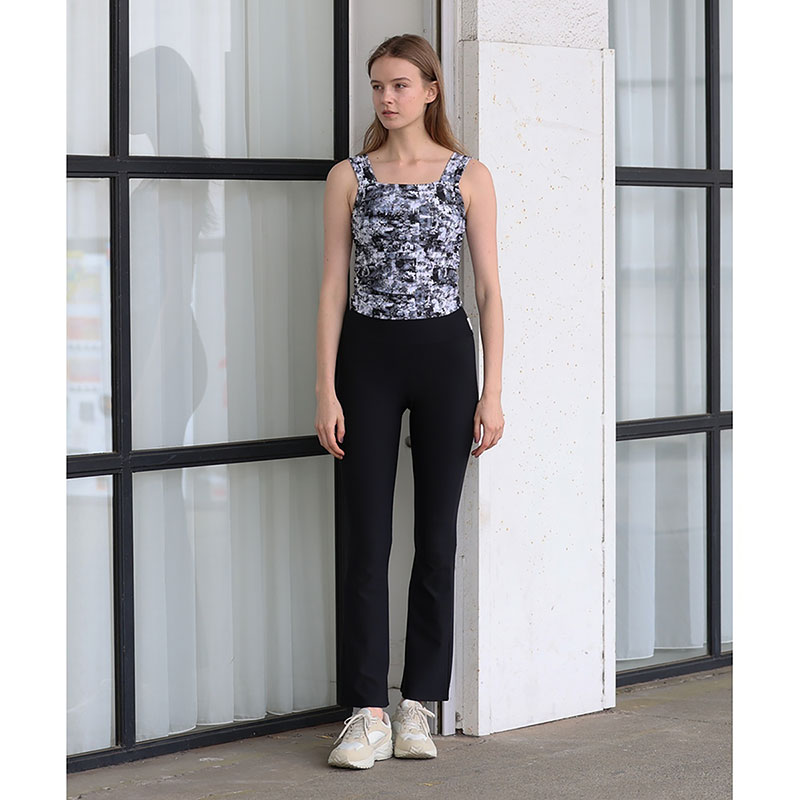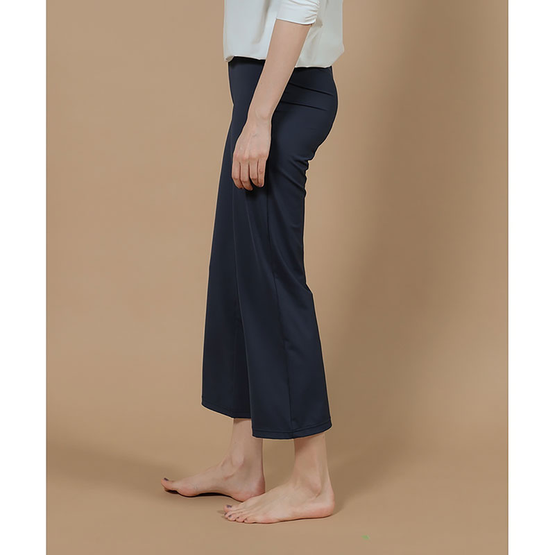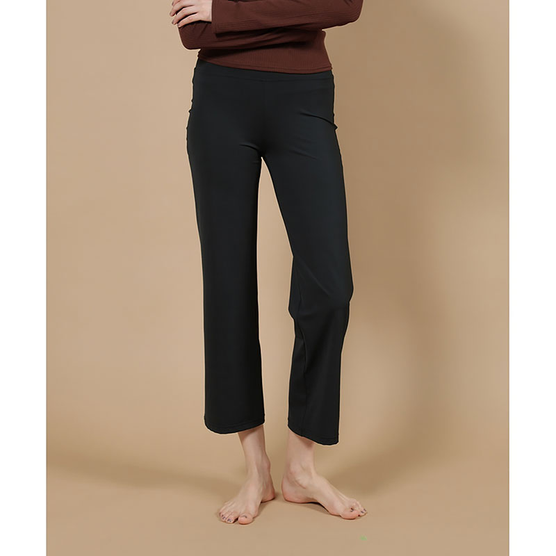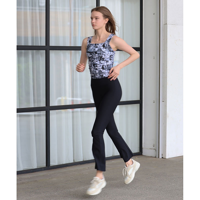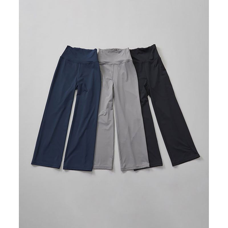 レギンスが苦手な方に人気のフレアパンツに、新色が登場!軽やかで伸びのよい素材にUVカット機能を備え、快適なはき心地と美しいシルエットを両立する高機能な一本です。お腹まわりはすっきり見せつつ、ハイウエストが優しくフィット。脚のラインを拾いにくいシルエットなので、ヨガやワークアウ トはもちろん、リラックスしたい日にぴったり。着丈の長いトップスを合わせれば、より体のラインを強調せずに着用できます。