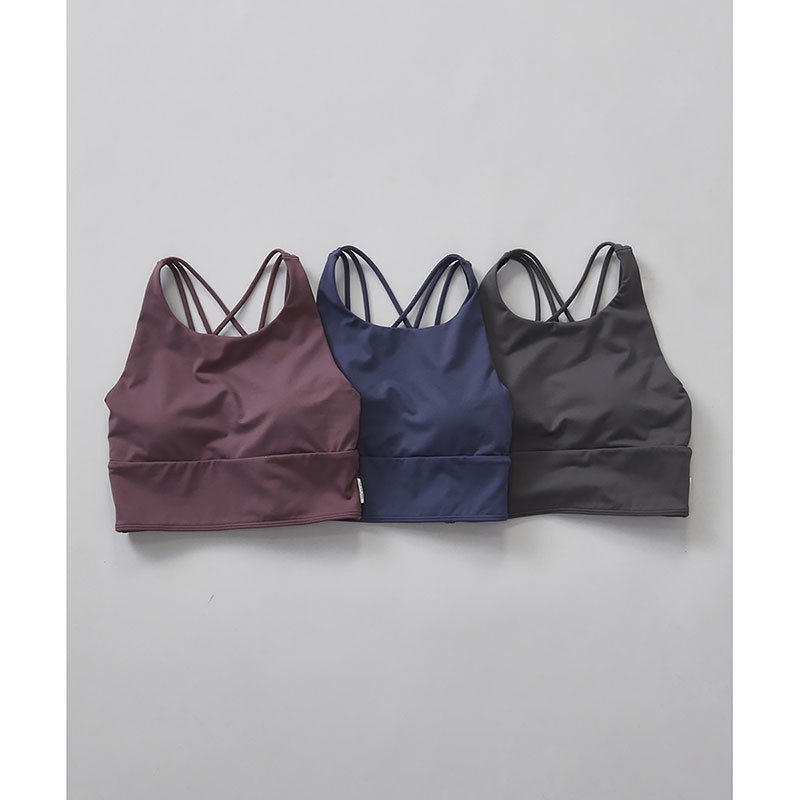 パウダリーで上質な肌触りと、しなやかなストレッチ性で人気の新定番ショートトップスに、洗練されたプラムと万能なグレーが仲間入り!しっかりとした厚みがありながらも、身体にフィットするため、アクティブなシーンでも動きを制限する事なく快適です。汗や摩擦にも強く、ハードなワークアウトにも◎。同素材のハイウエストレギンスとセットアップで着れば、お腹も気にならず安心感。水陸両用でアクティブにも着回せ、バッククロスデザインをいかして、デイリーウェアのインナーとしても活躍します。