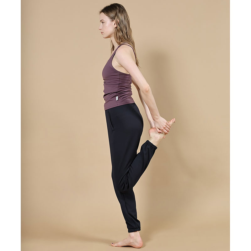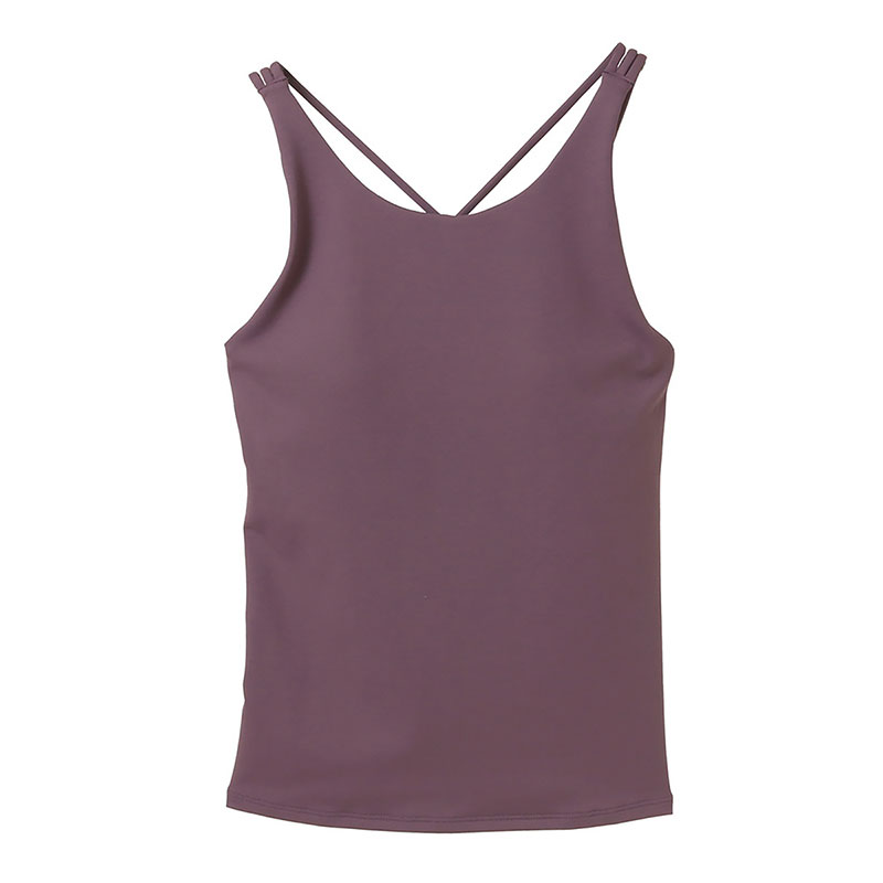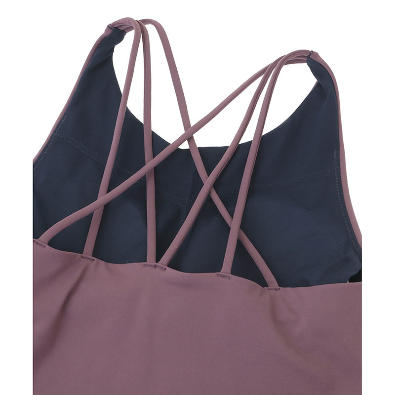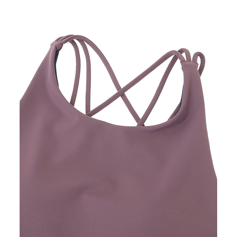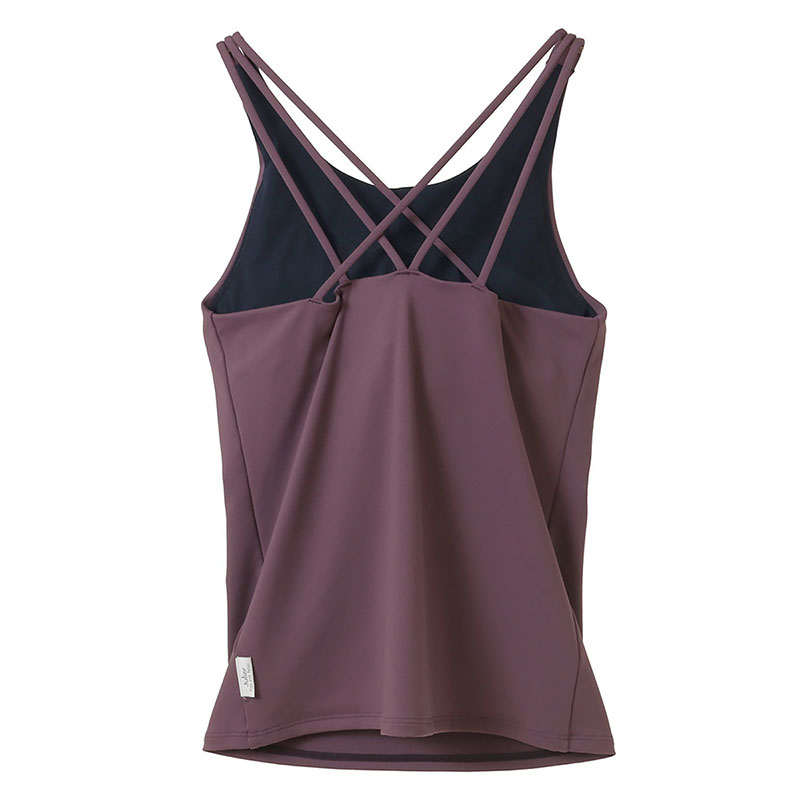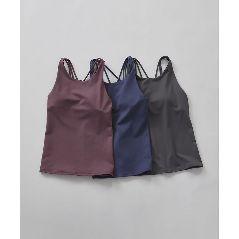 パウダリーで上質な肌触りと、しなやかなストレッチ性で人気の新定番素材から、キャミソールが登場。ヨガフィットで好評だった形をベースに、お腹をカバーする丈感はショートトップスが苦手な方にもおすすめです。背中が美しく映えるクロスデザインで、動きやすさも抜群。同素材のレギンスとセットアップで合わせるのはもちろん、定番のデザインだからこそ、プリントレギンスとの相性も良く、1枚持っておくと頼れる万能トップスです。
