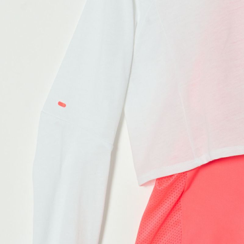 ショート丈のハイネック長袖シャツとロング丈のタンクトップがセットになったお買い得なアイテム。セットでもそれぞれお手持ちのアイテムと組み合わせても使える、コーディネートの幅が広がるアイテムです。タンクトップのサイドはメッシュで切り替えられているので、通気性も良好です。