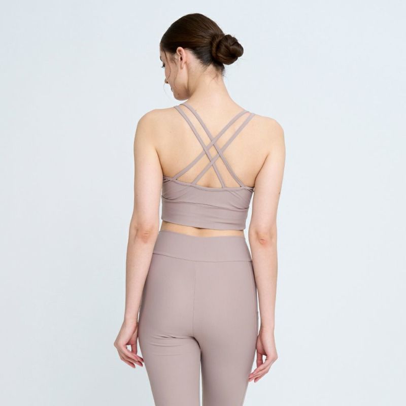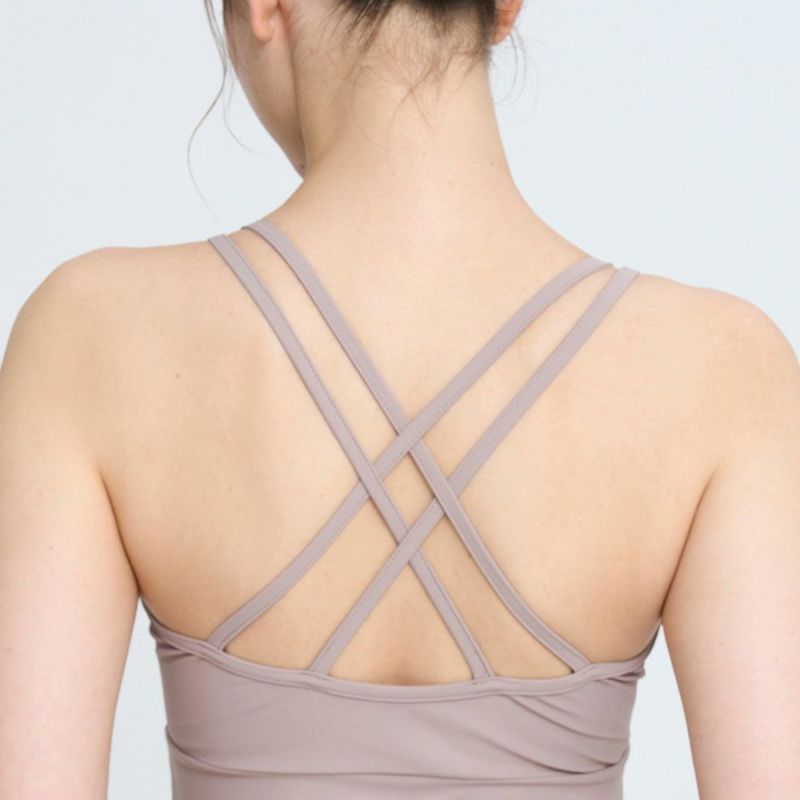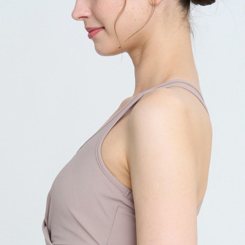 着る人のオリジナリティと美しい動作が引き立つ、モードで上質感のある女性のためのブラトップです。フロント裾のクロスデザインで、甘くなり過ぎないしなやかな女性らしさを演出します。斜めのラインが出ることで着痩せ効果抜群、ストラップはダブル仕様で華奢な印象になります。