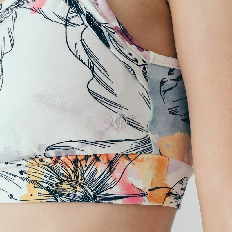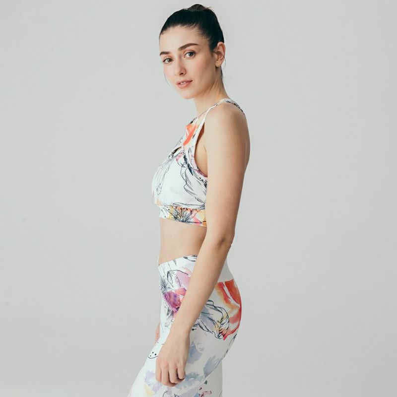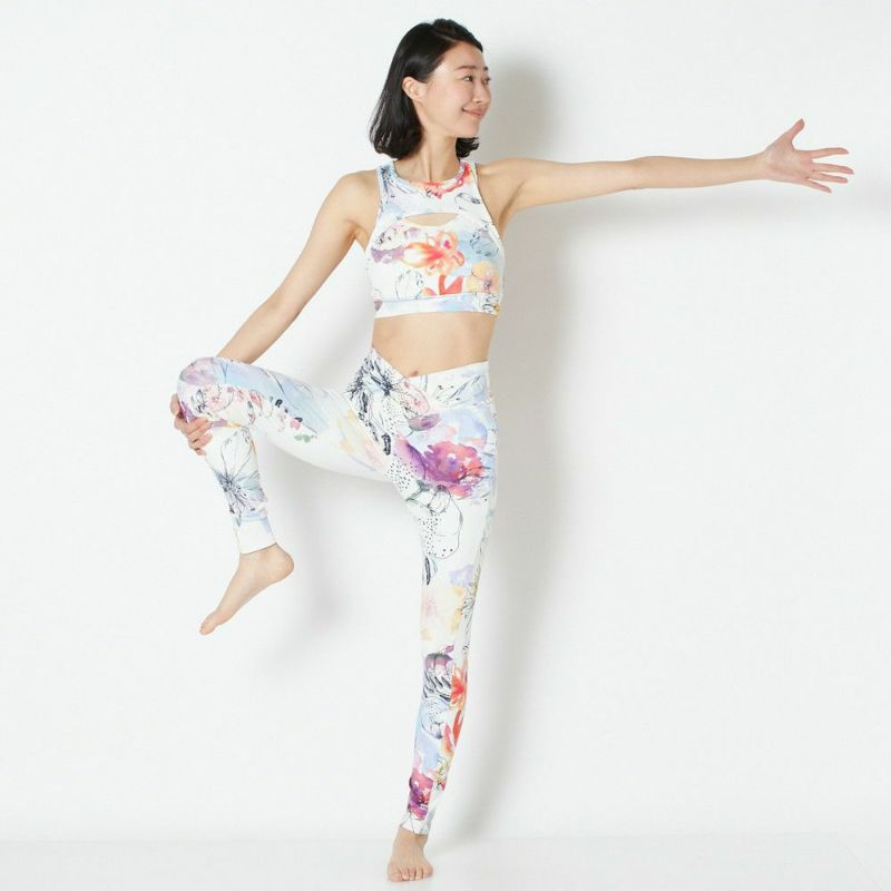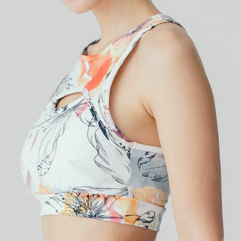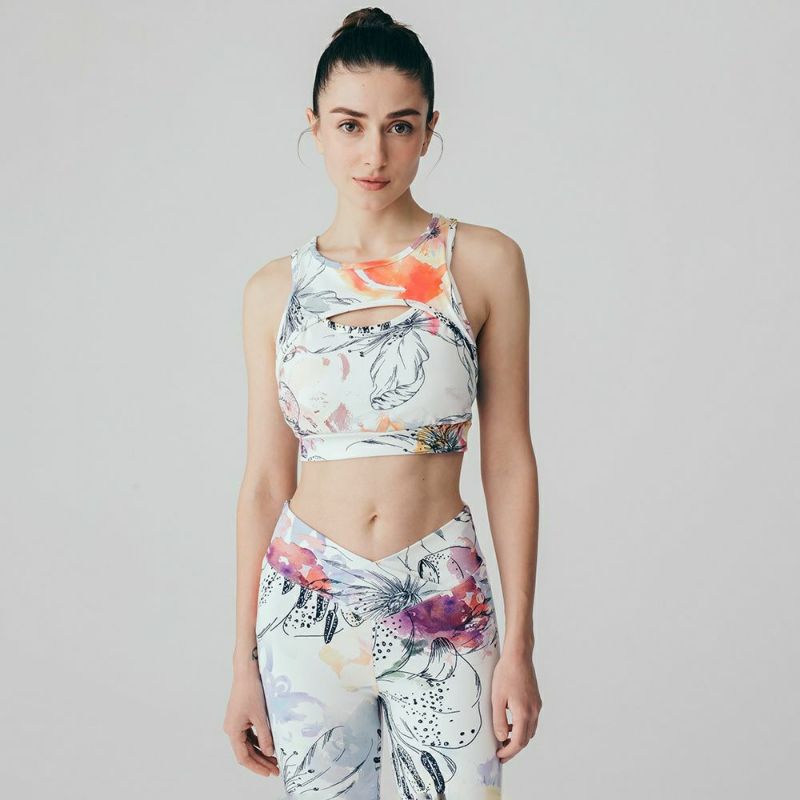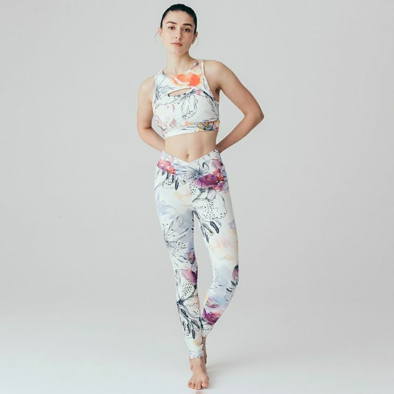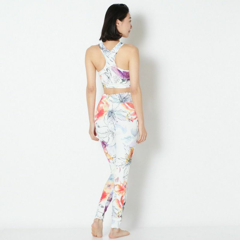 リジーオリジナルのプリントブラトップ。華やかな印象のフラワー柄です。胸元あきデザインでファッション性の高い1枚。伸びのよいストレッチ素材でなめらかな着心地です。同柄のレギンスとセットアップの着こなしが可能です。デザインは人気ファッションブランドDOUBLE STANDARD CLOTHINGが監修しています。