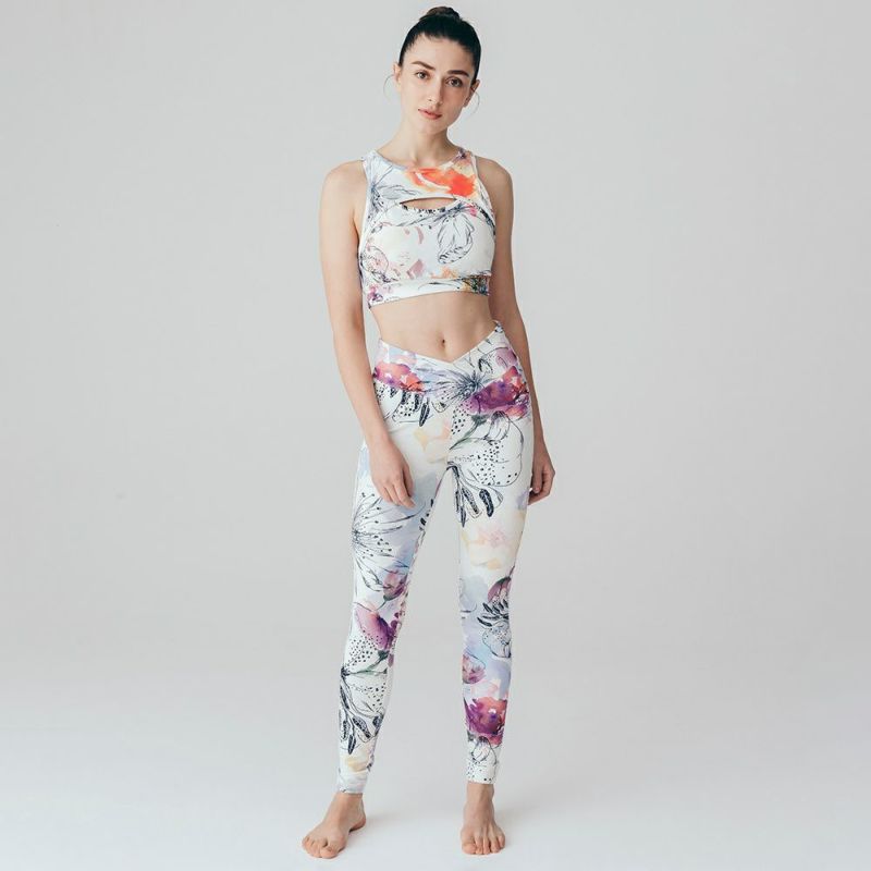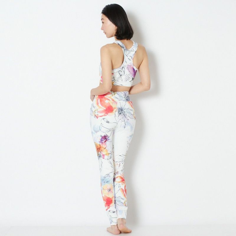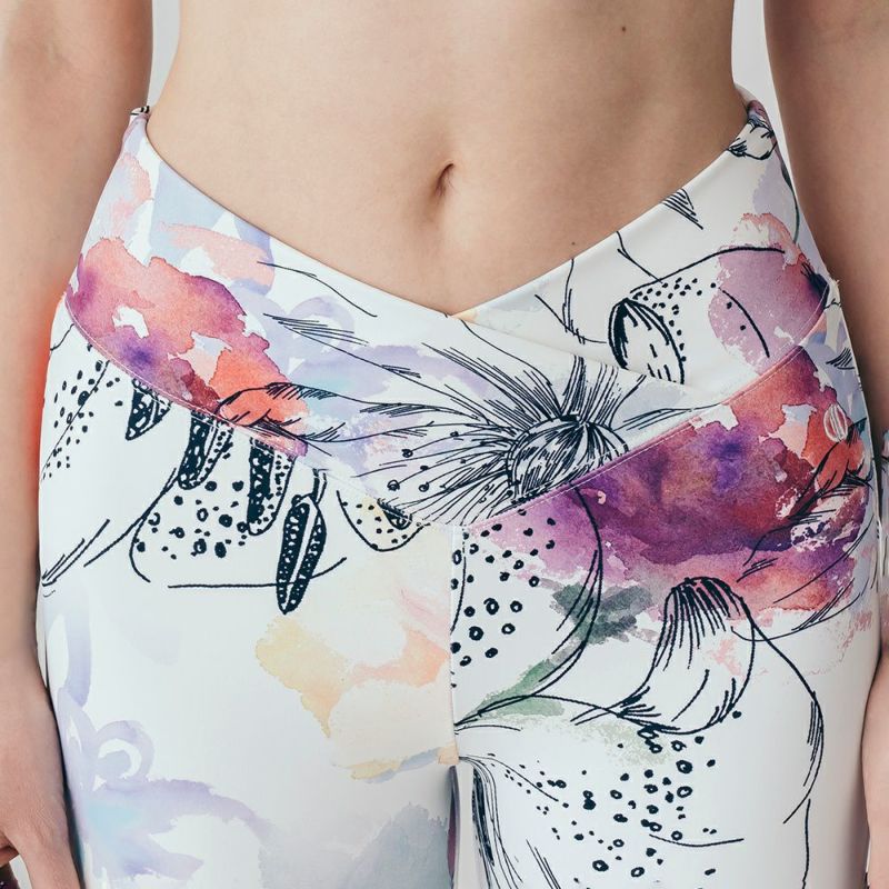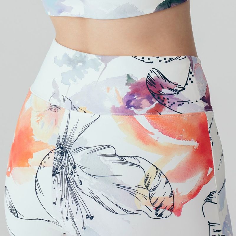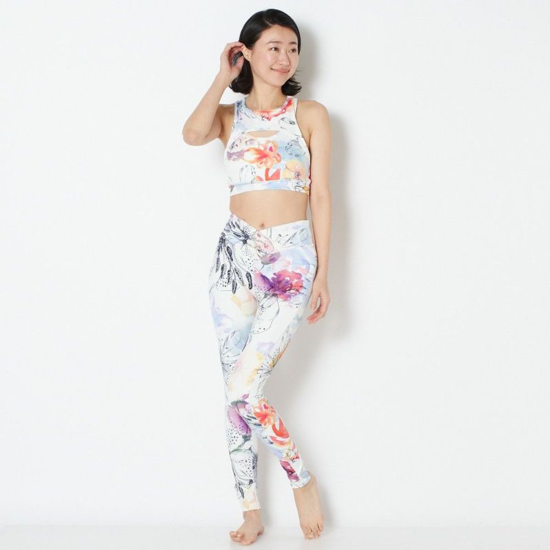 リジーオリジナルのプリントレギンス。華やかな印象のフラワー柄です。クロスになったウエストデザインがスタイルよく見せてくれます。伸びがよくストレッチが効いており、なめらかな着心地です。