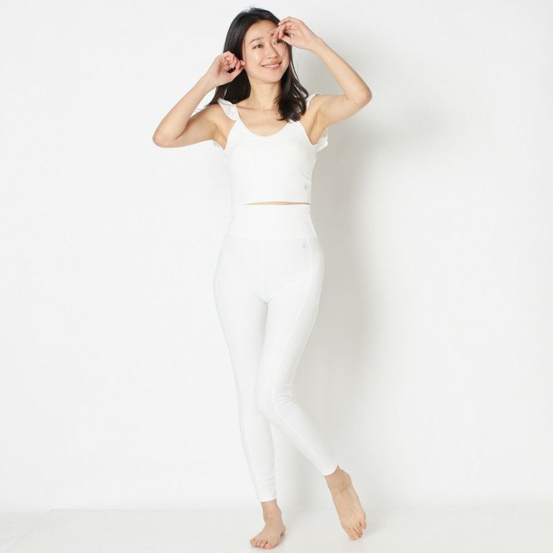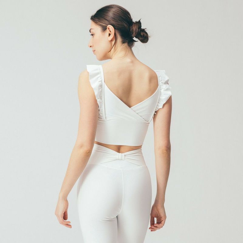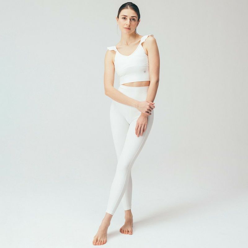 肩がフリルになった甘めディテールのブラトップ。長めの丈感でお腹までカバーしてくれます。引き締めてくれるタイトな着用感です。高品質なメリルハイテンション素材で、さらりとした肌触り/UVカット機能/接触冷感機能/ストレッチ機能。アクティブな動きのサポートを実現してくれます。