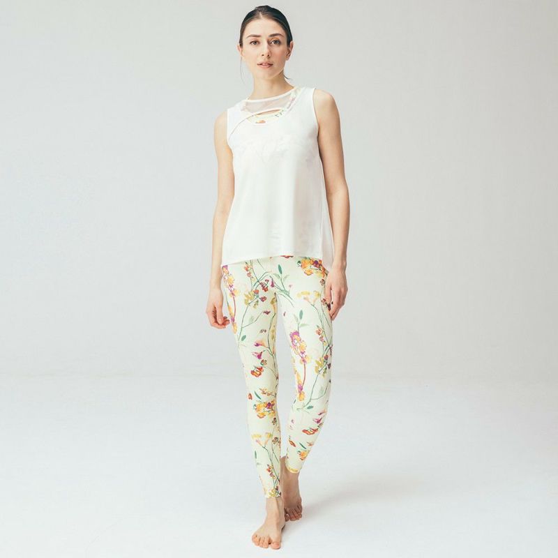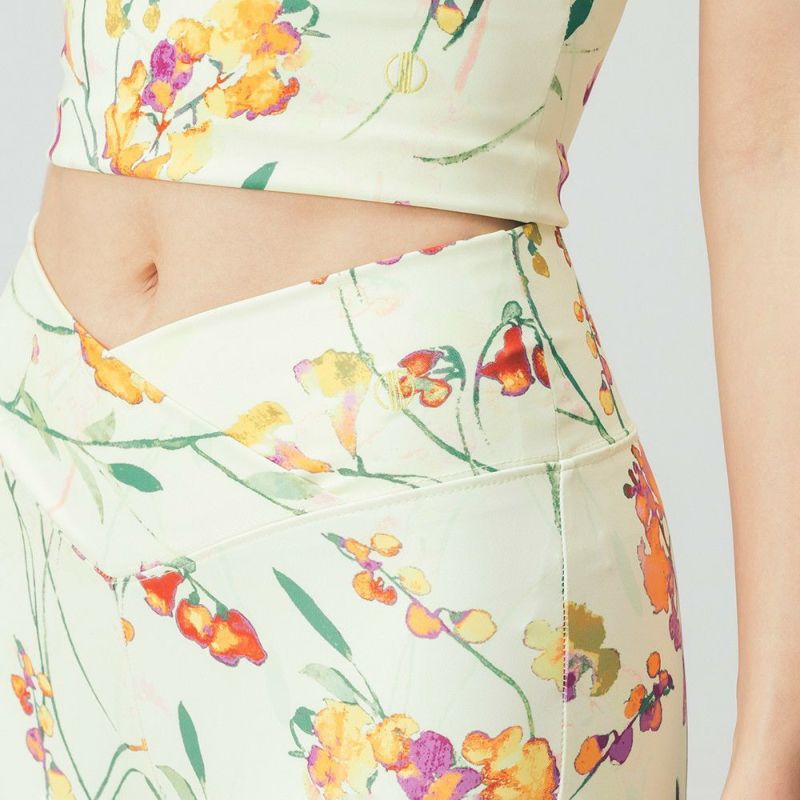 クロスデザインがウエストを美しく見せてくれるリジーオリジナルのプリントレギンス。春らしさ満載のフラワー柄です。伸びがよくストレッチが効いており、なめらかな着心地。女性らしさを引き立てる優しいピンクと、ヘルシーで明るい雰囲気のイエローの2色展開です。デザインはDOUBLE STANDARD CLOTHINGが監修しています。