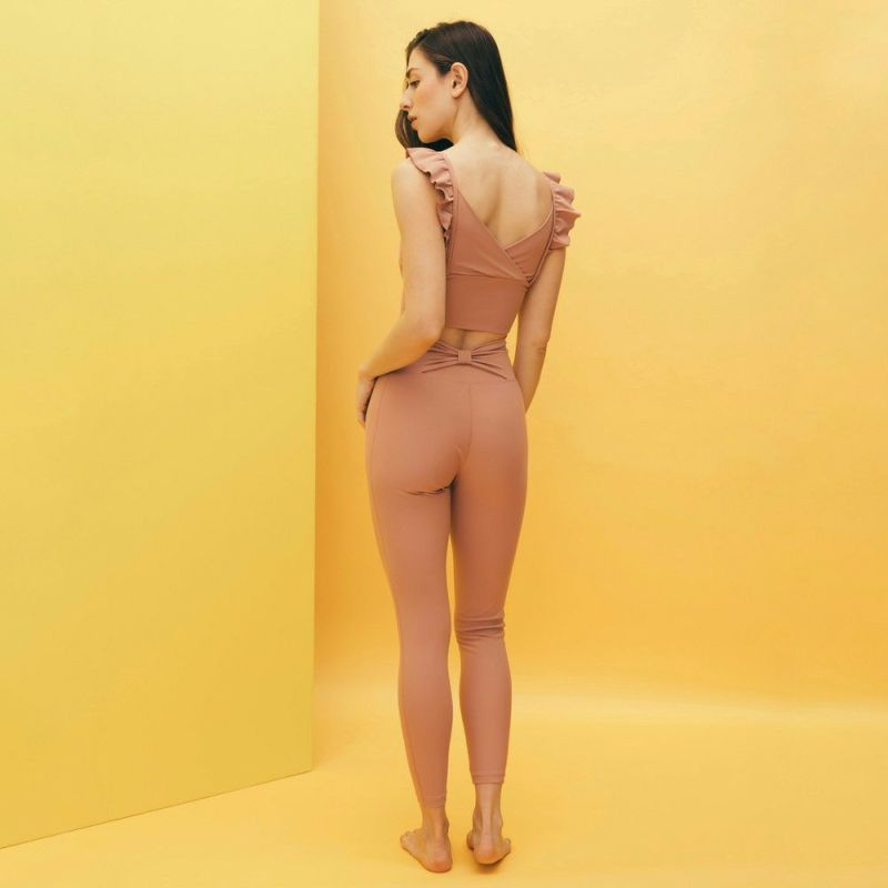 ウエストの後ろがリボンになった甘めディテールのレギンス。しっかりとお腹をカバーしてくれるハイウエストで、引き締まったタイトな着用感です。高品質なメリルハイテンション素材で、さらりとした肌触り/UVカット機能/接触冷感機能/ストレッチ機能。アクティブな動きのサポートを実現してくれます。